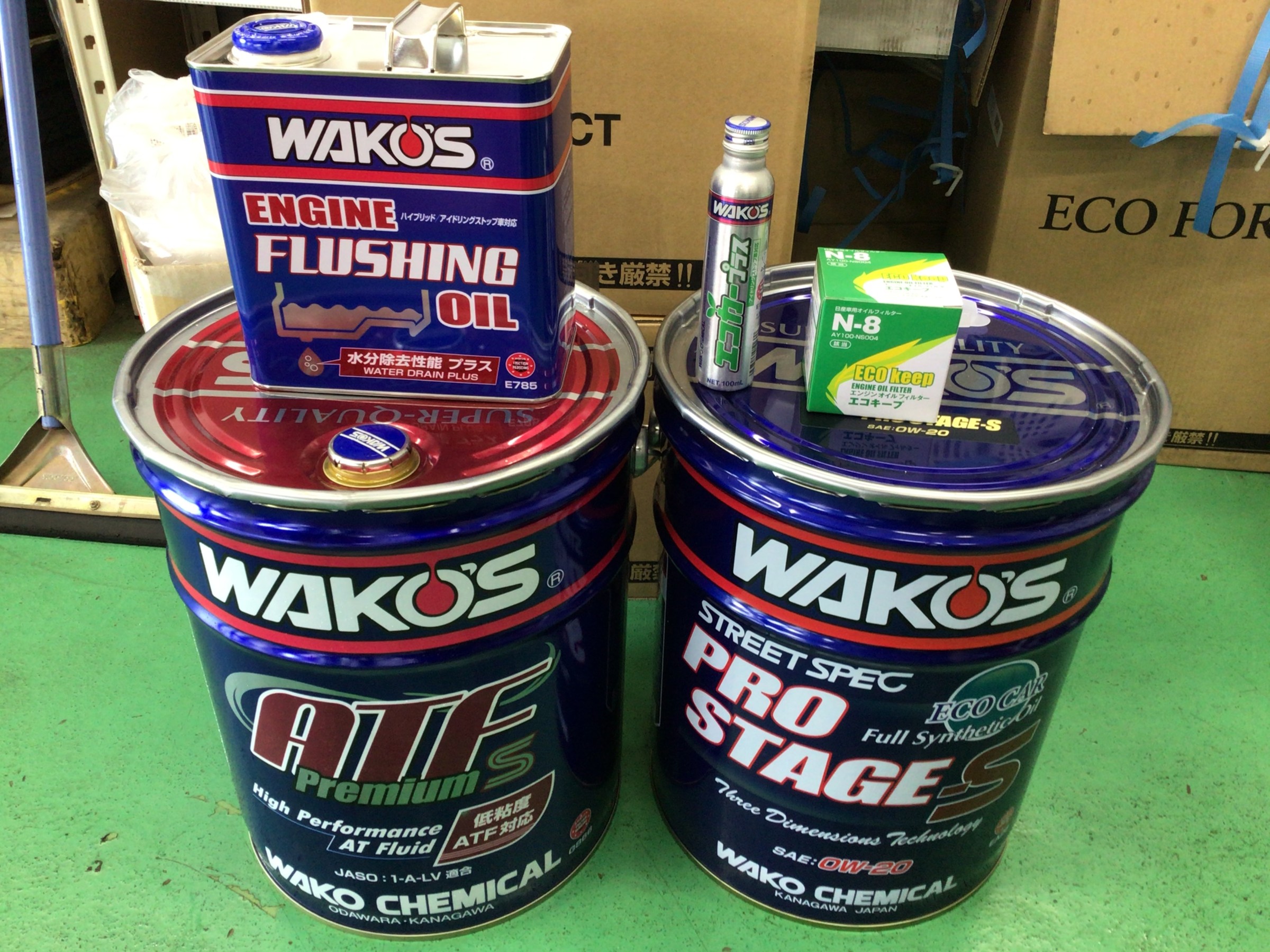 今回はエンジンオイル、エレメント、距離をだいぶ乗ってしまったのでフラッシング、添加剤、ATF交換です。
