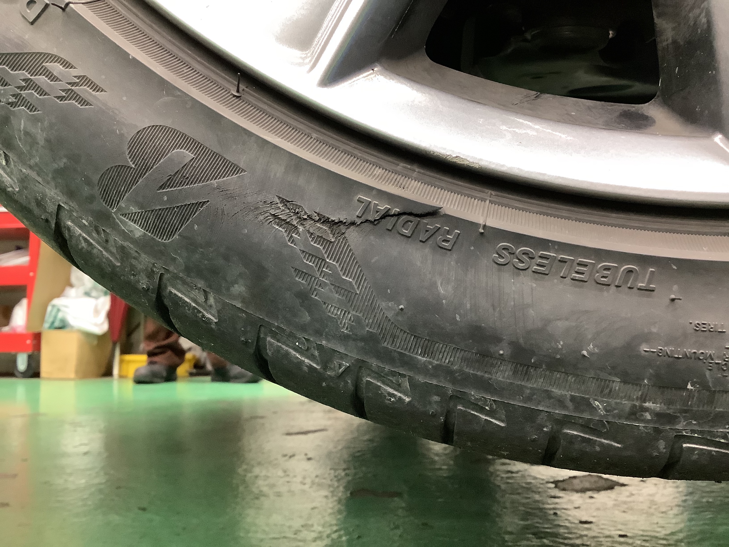 今回は、お客様からご相談を受けまして、タイヤの側面に傷があり、少しめくれてしまっているのとの事でした。