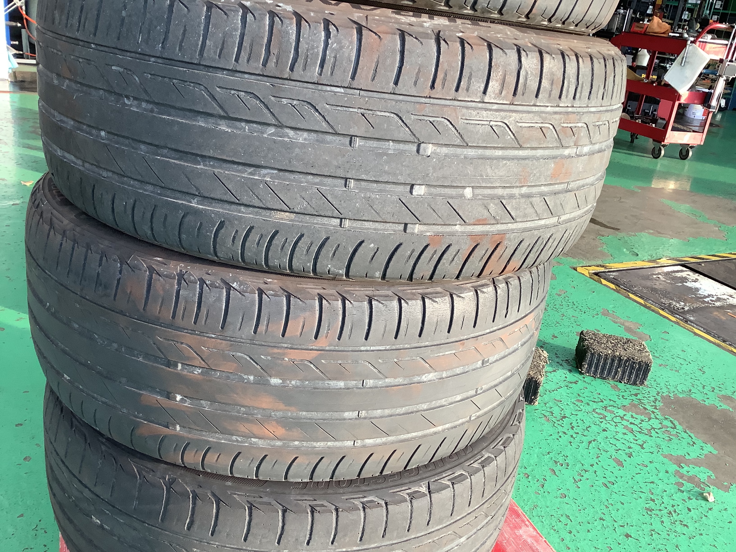 外した、新車装着タイヤです。スリップサインまであと、少しでした(o_o)