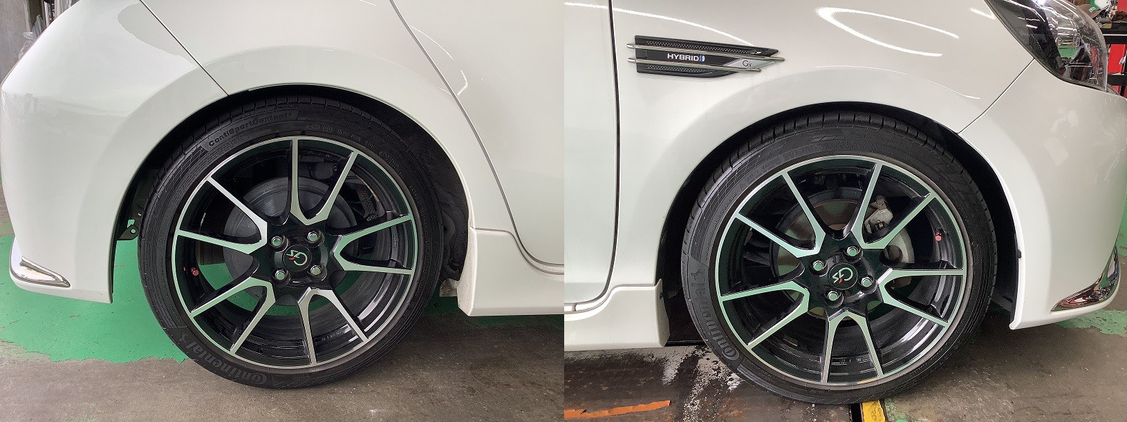 施工前の状態です。17インチなので、タイヤの扁平率の薄さも有り、タイヤハウスの隙間は目立ちますよね( •̀ ω •́ )✧