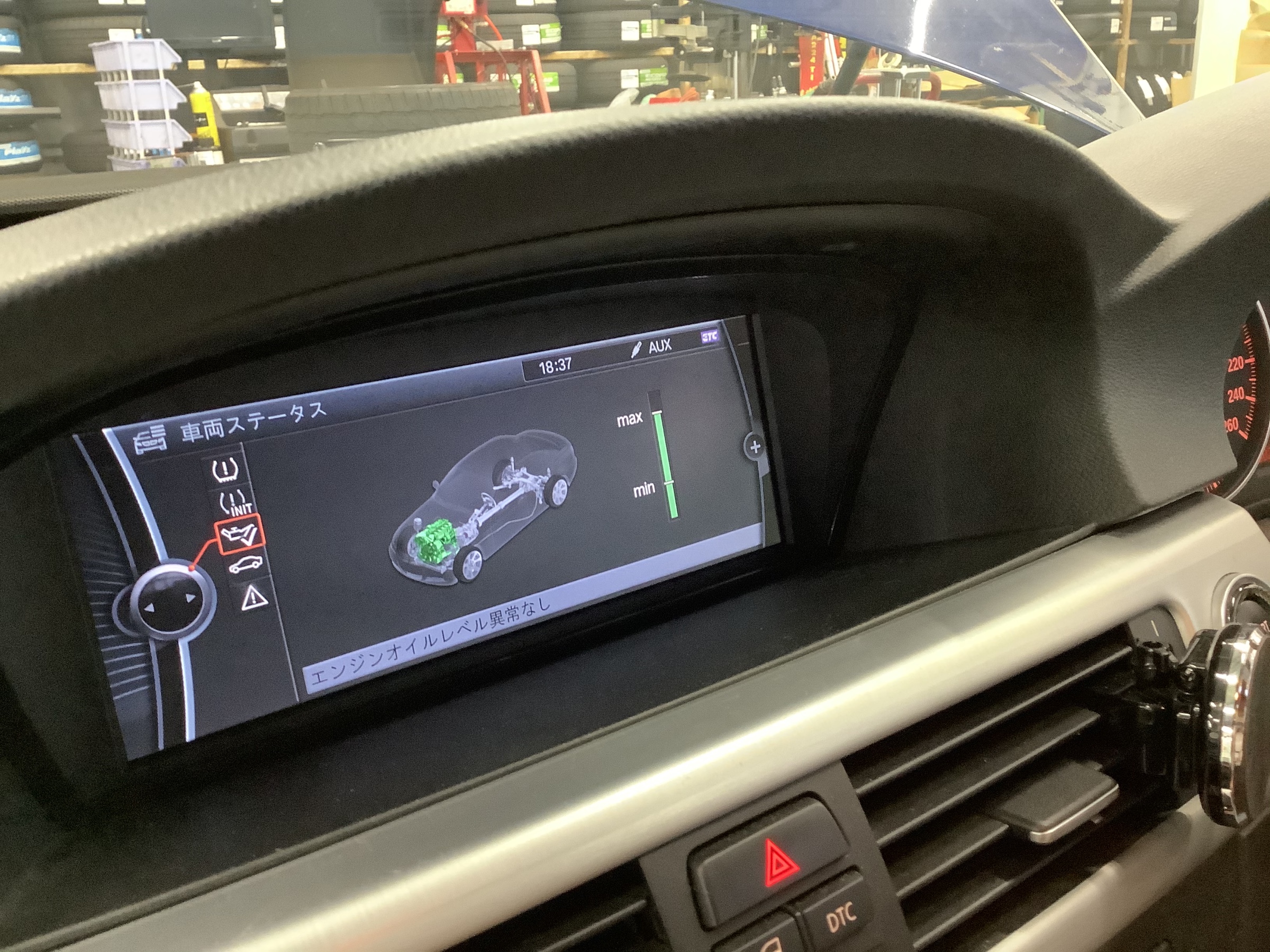 輸入車で、多いのが車内のモニターでの油量確認になります。この様に、油量レベルも出ますので、確認させて頂きます(๑˃̵ᴗ˂̵)