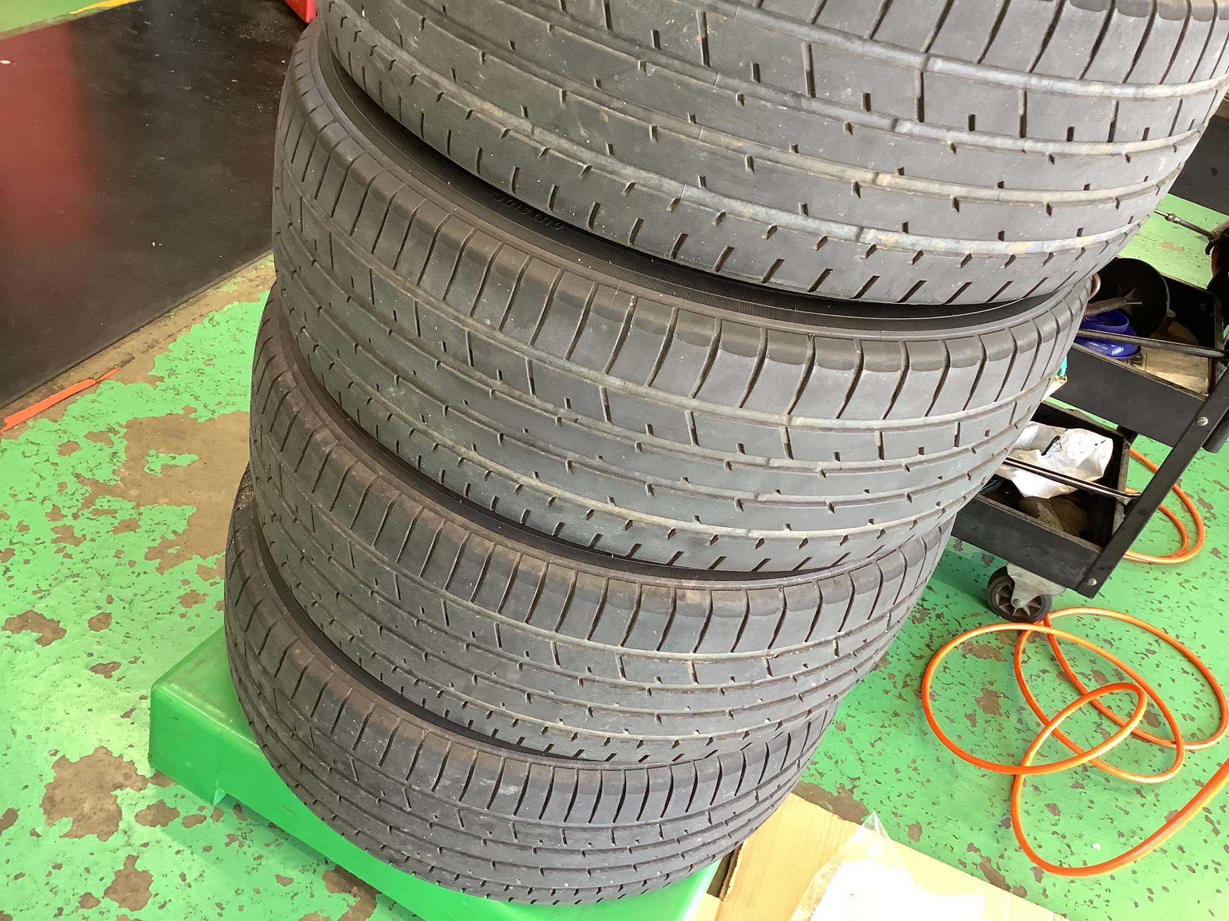 外したタイヤになります。まだこの現行80型ハリアーが出て間もないのでタイヤは状態としては、まだ交換時期では、ありませんが最初にお客様から静粛性の乗り心地がいいタイヤがと言う事なので、交換させて頂きましたm(._.)m