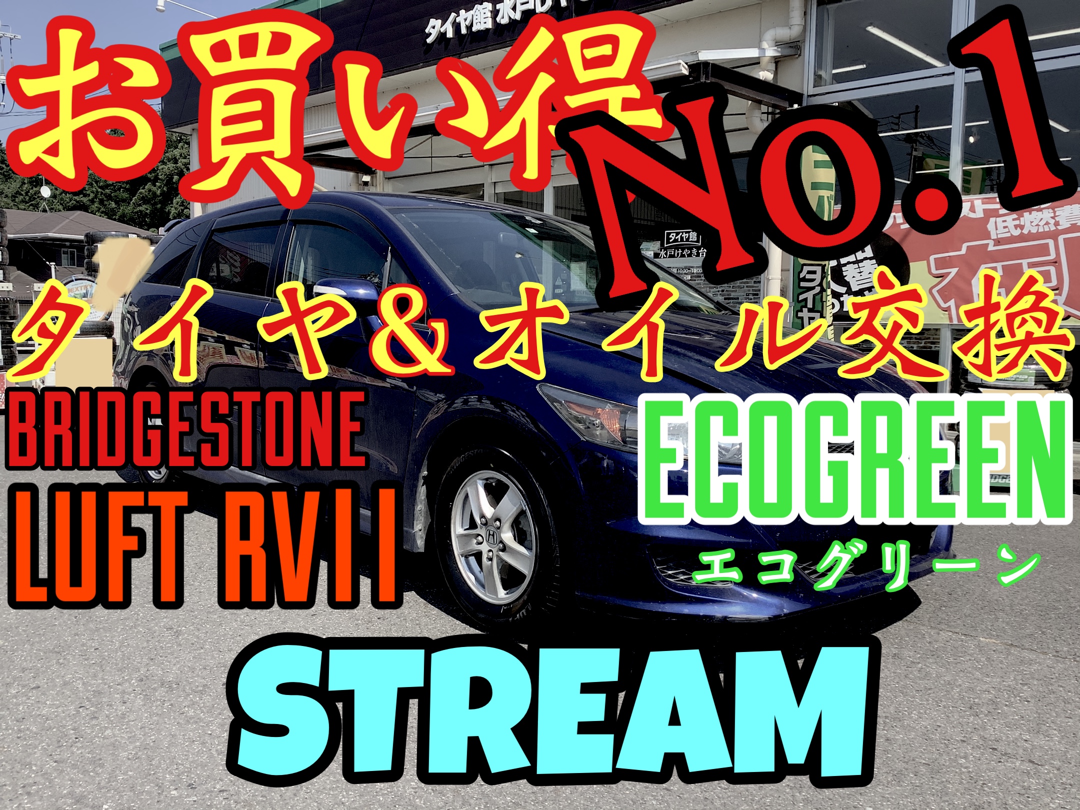 タグ:タイヤ館 水戸 お買い得 安い エンジンオイル オイル交換 エンジンオイル交換 エコグリーン オイル タイヤ館 オイル ダイハツ STREAM ストリーム 日産 ホンダ トヨタ スズキ スバル 三菱 マツダ レクサス ビーリフレッシュ B−Refresh 夏タイヤ LUFT RVⅡ アライメント