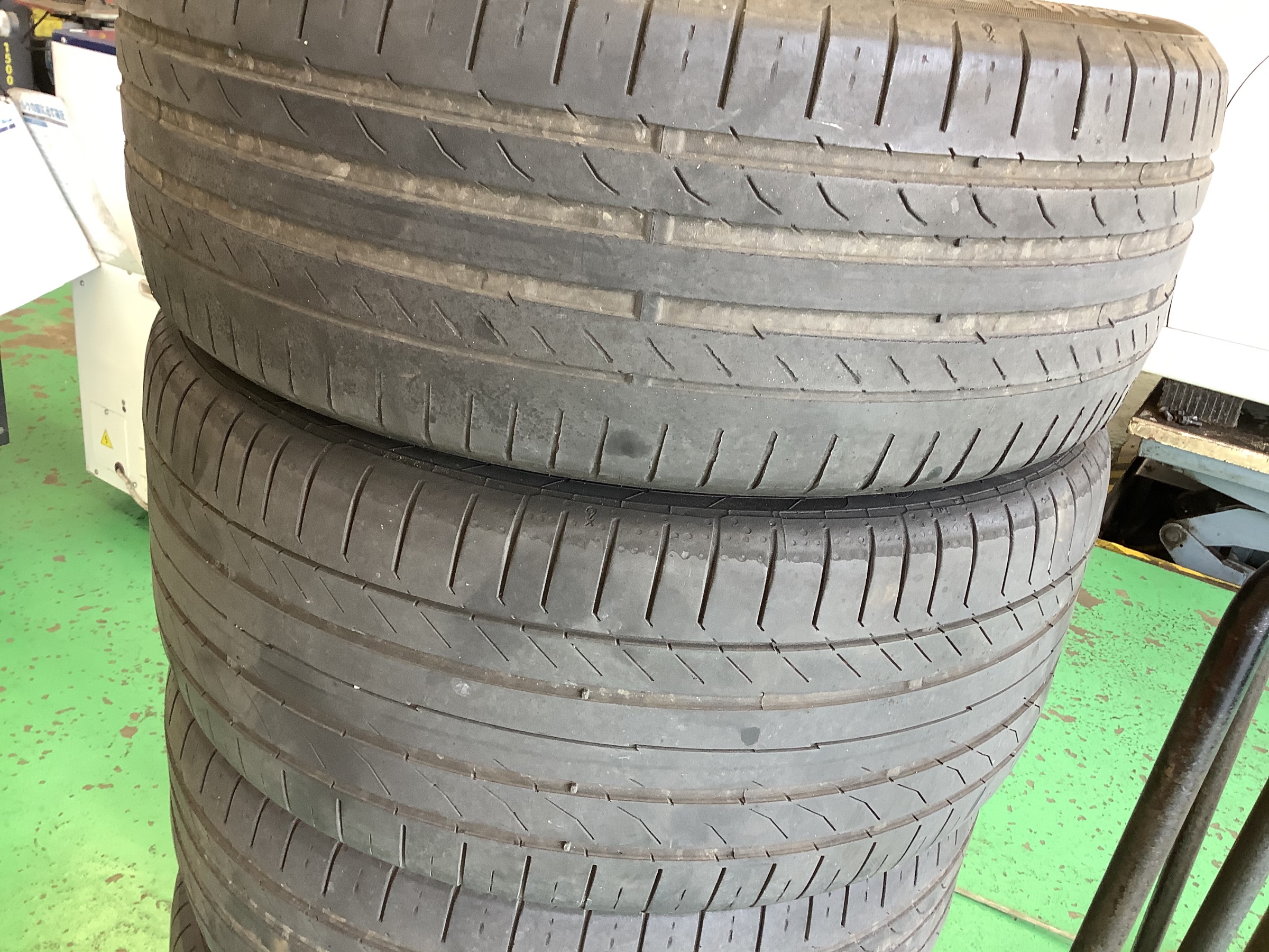 外したタイヤは、残り3ミリ程でした。溝が少なくなってくると排水性が悪くなり、安全性が低下していきます。