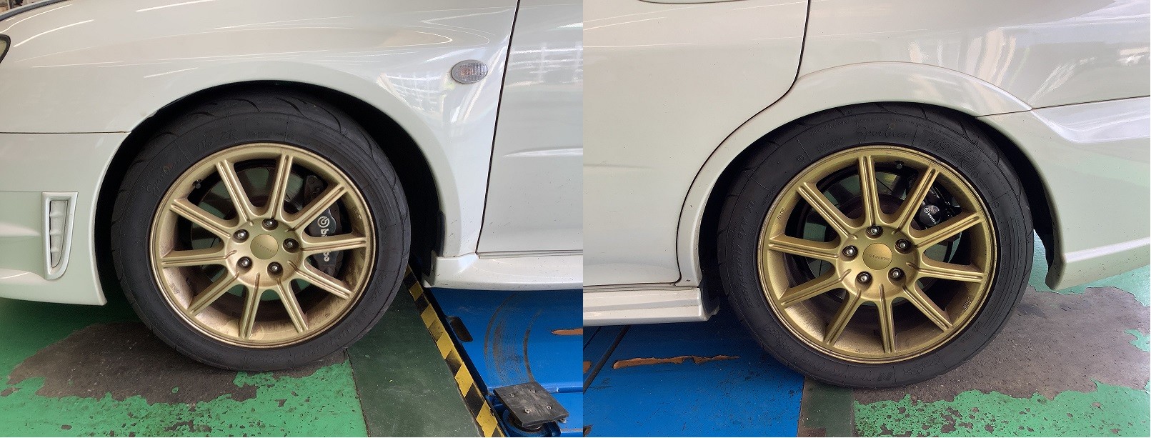 施工後、各部最終チェックをして、フロントは施工前とほぼ変わらずです。リアは少し下がりましたね。