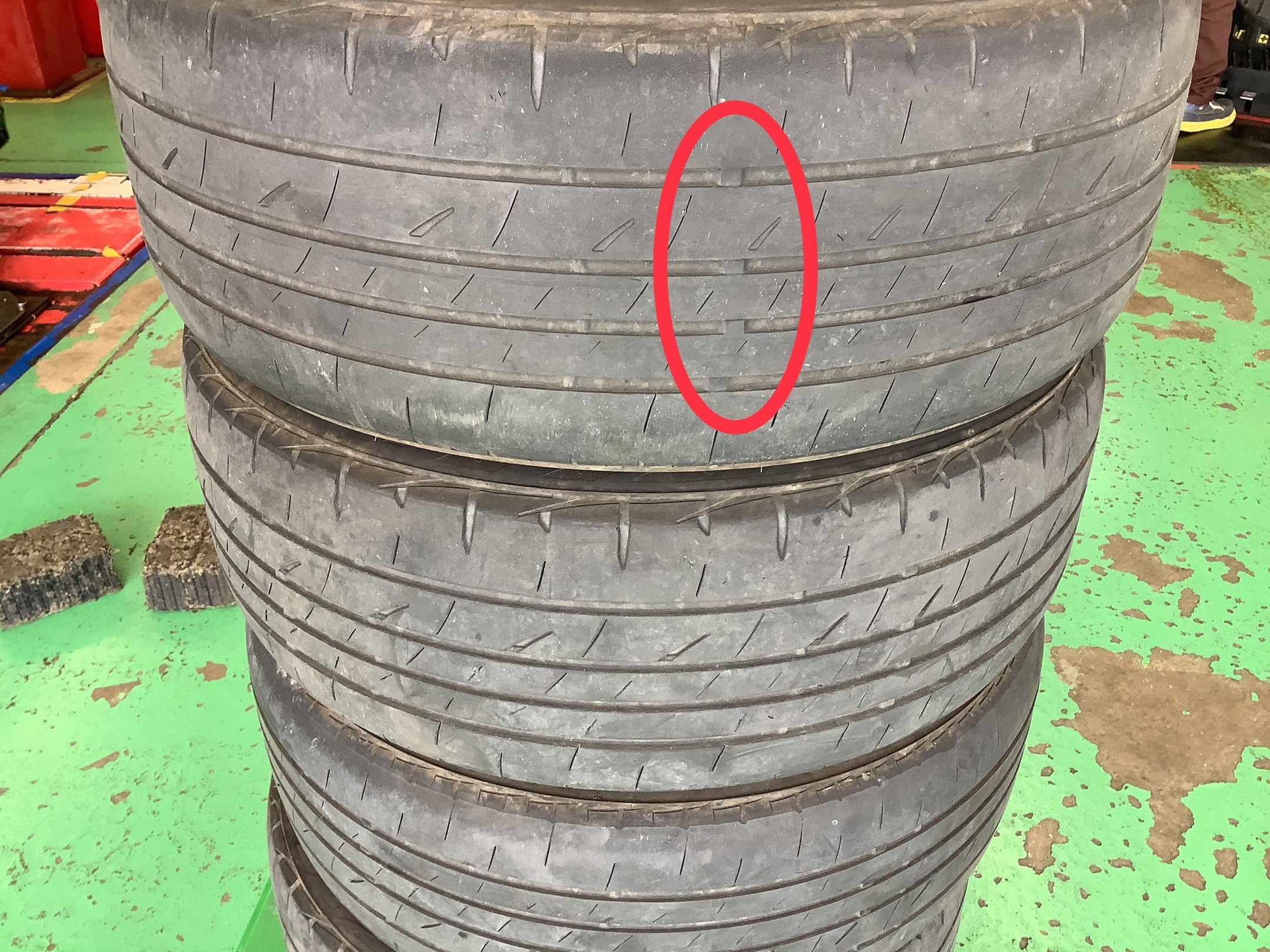 赤い丸部分に、スリップサインがありますが、ほぼ露出しかけてます。
