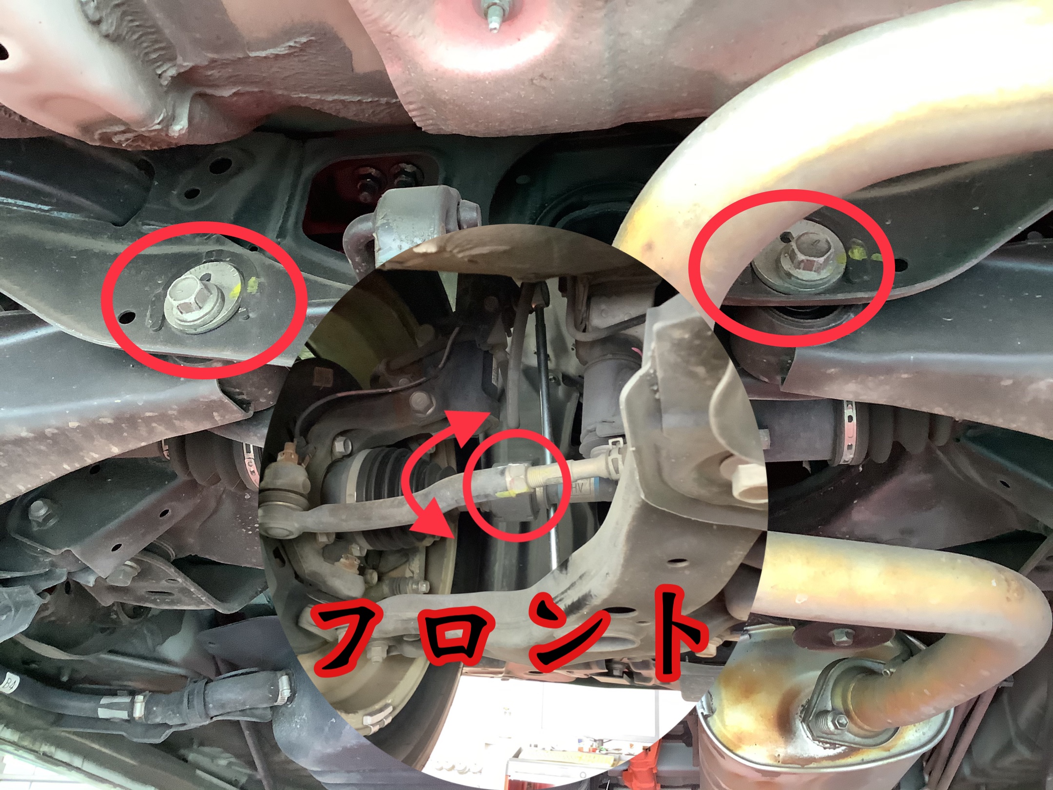 フロントは、タイロットエンドを伸び縮みさせますm(._.)m