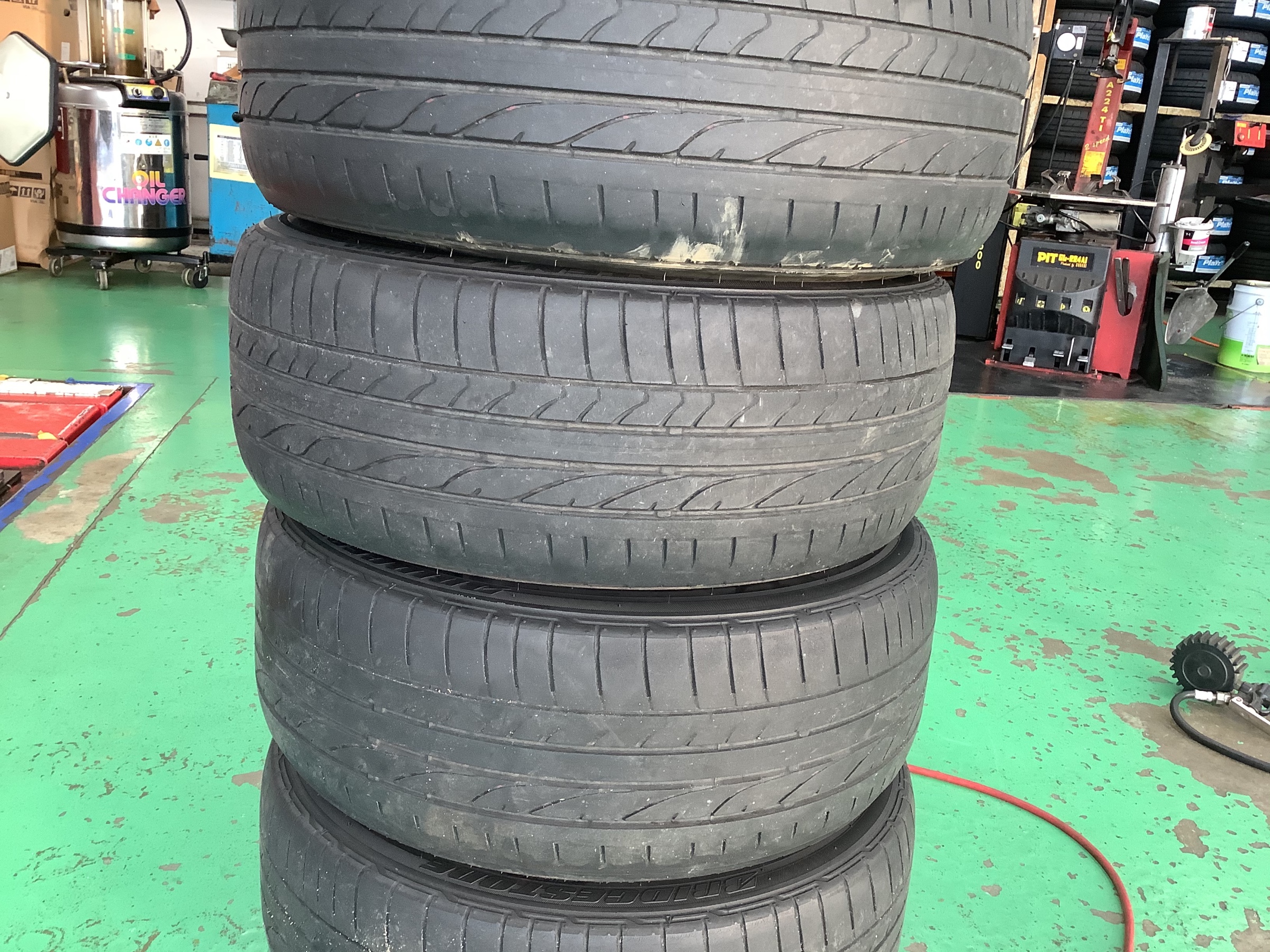 外した、新車装着タイヤになります。ポテンザのRE050が新車装着されてます。コチラのポテンザ、少し、市販品より硬いんですよね(>_<)