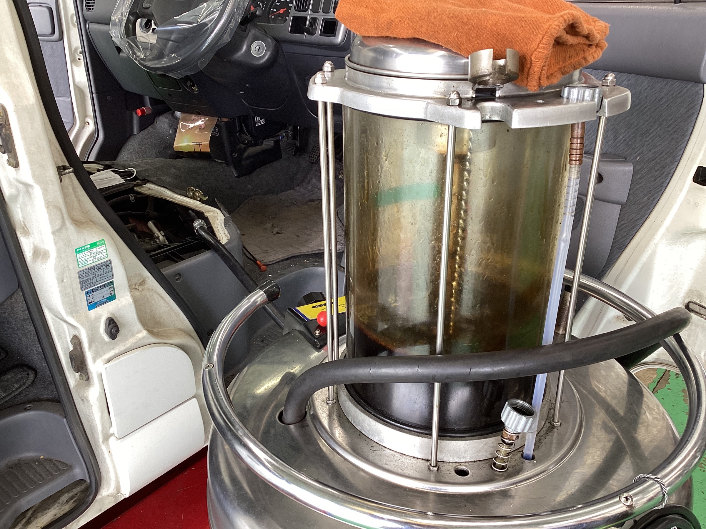 頂いております♪お客様のご要望に合ったオイルが見つかると思います‼︎まずは、古く汚れてしまったオイルを上抜きしていきます。