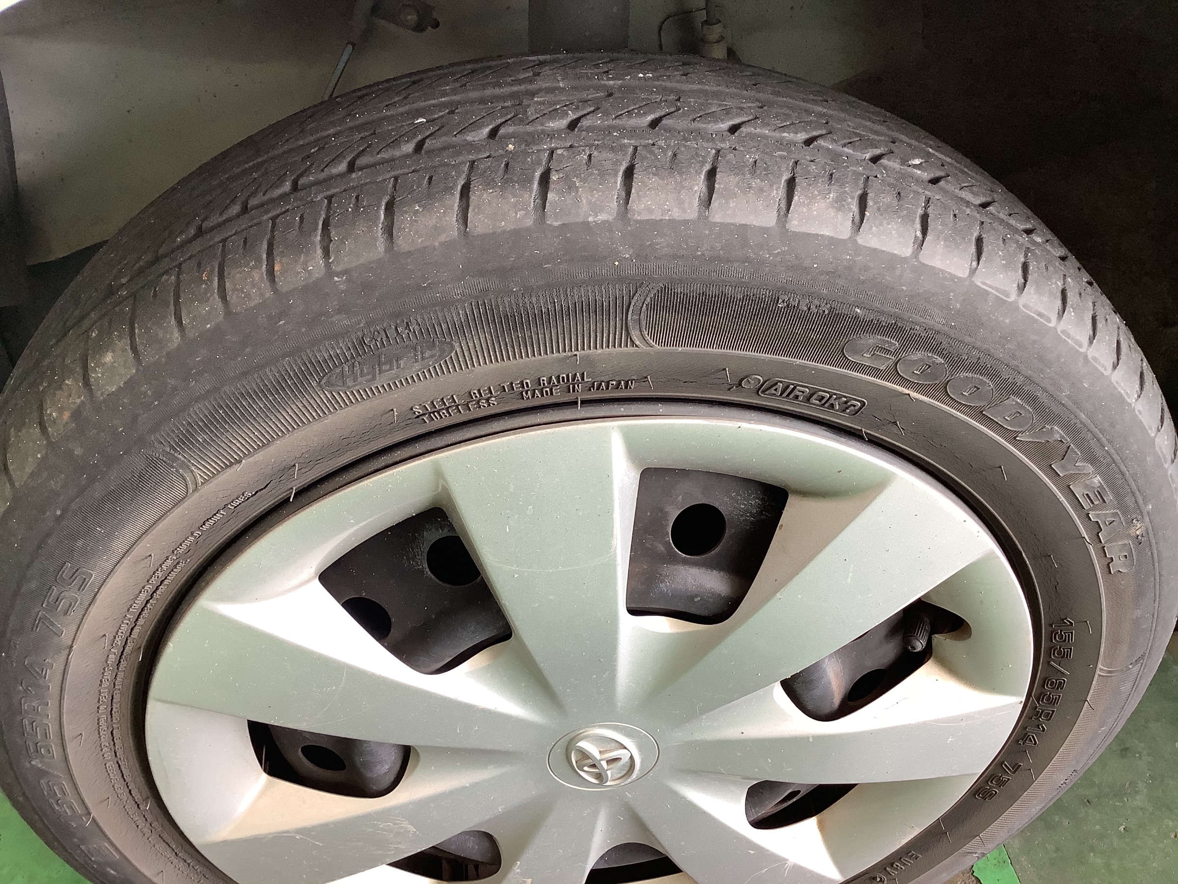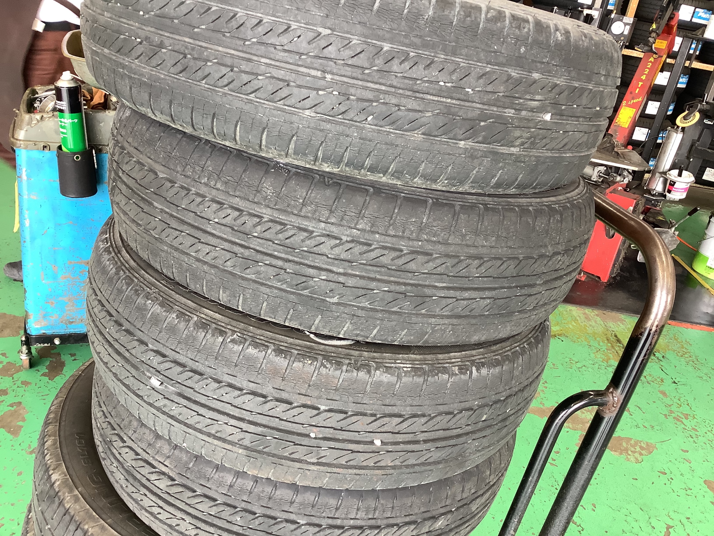 全体的に溝も少なく製造から年数も経っていたので、お客様とご相談の上交換させて頂きました。