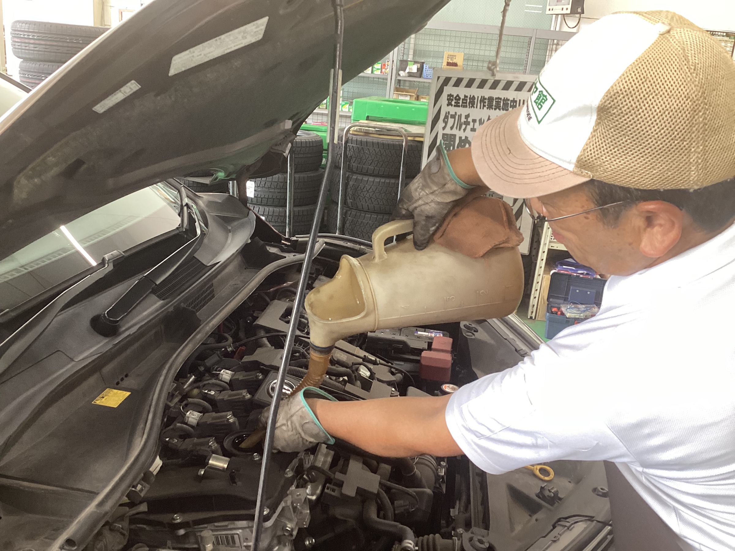 ※車種によっては、ドレンボルトを緩めて下から抜くことも