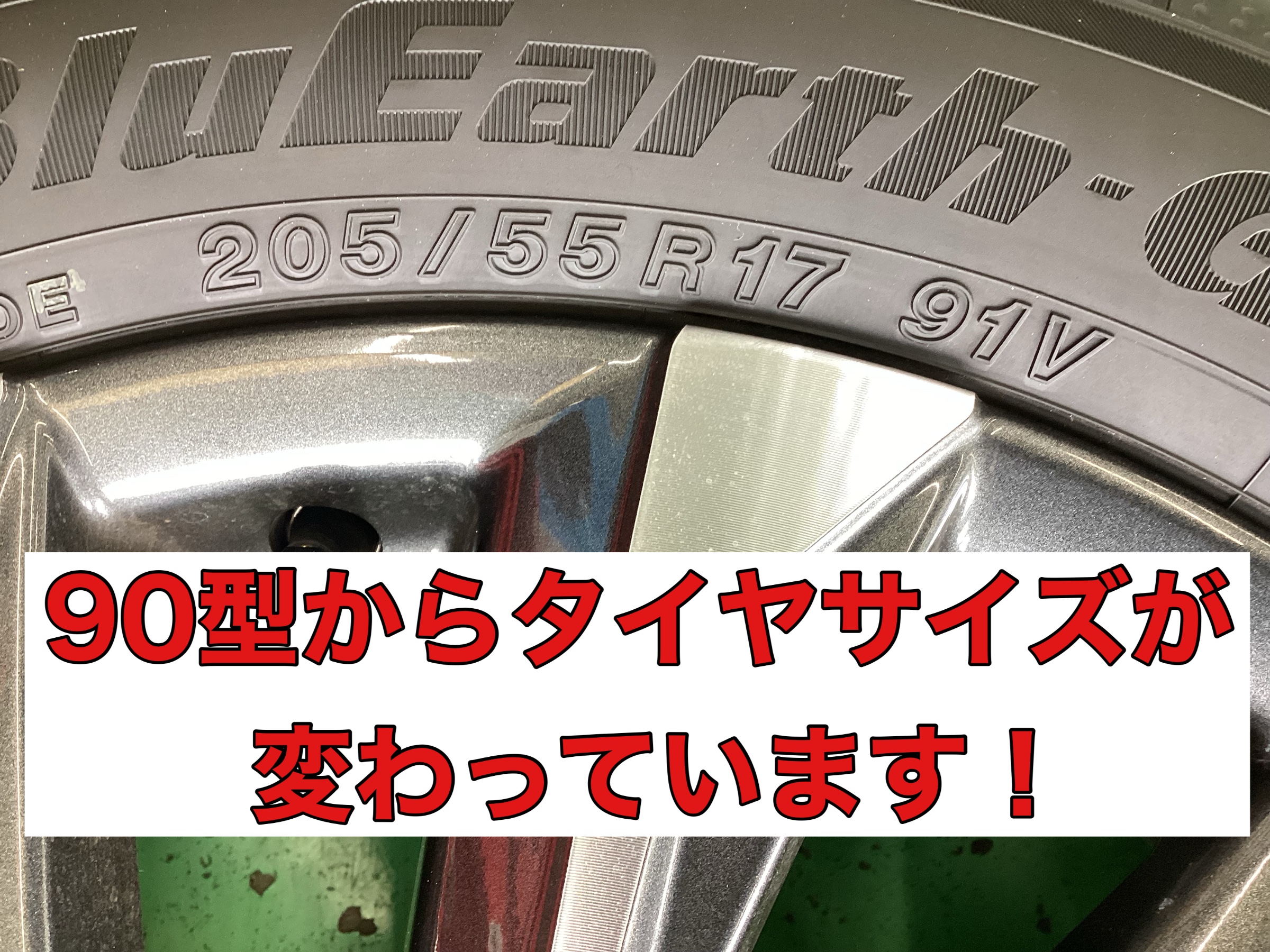 そして90型からタイヤサイズが変わっています。見た目にもデカいです。