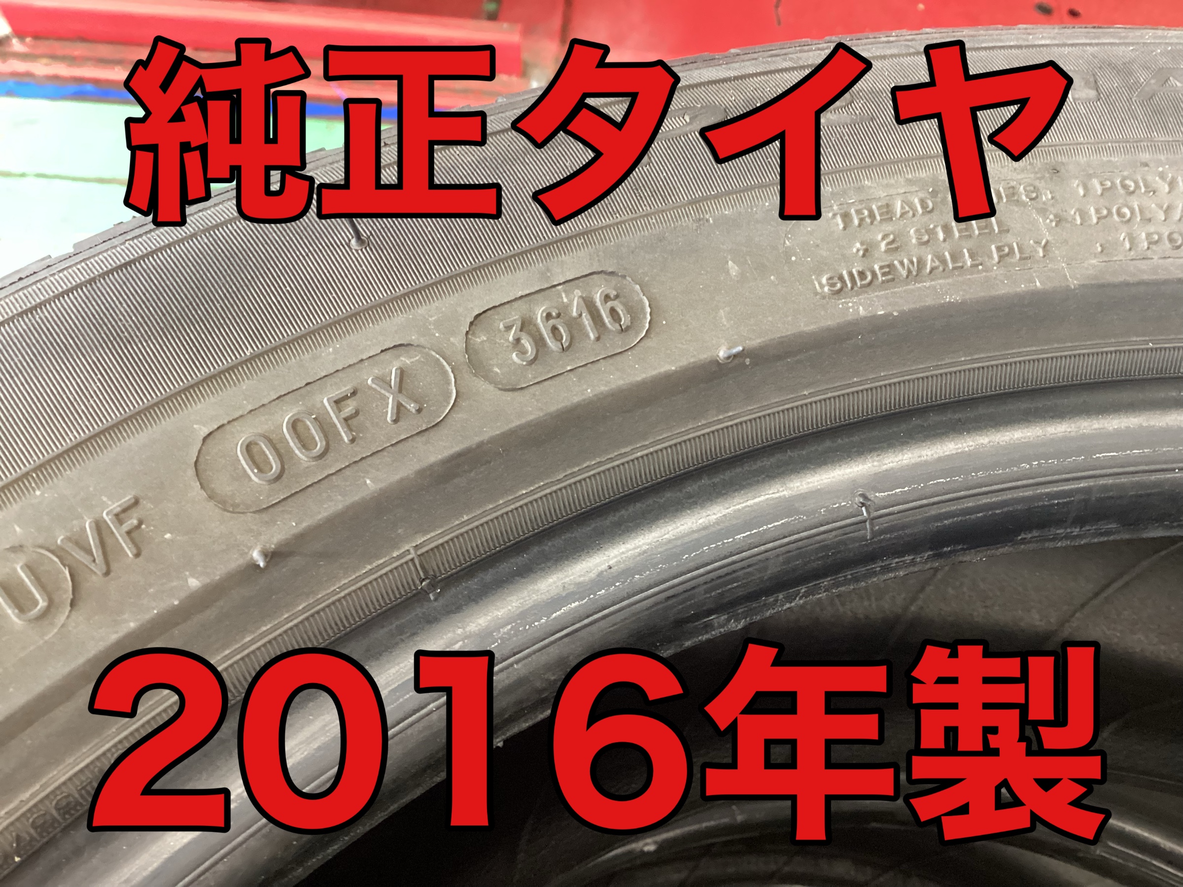 装着されていたタイヤは新車装着純正タイヤ、2016年製です。