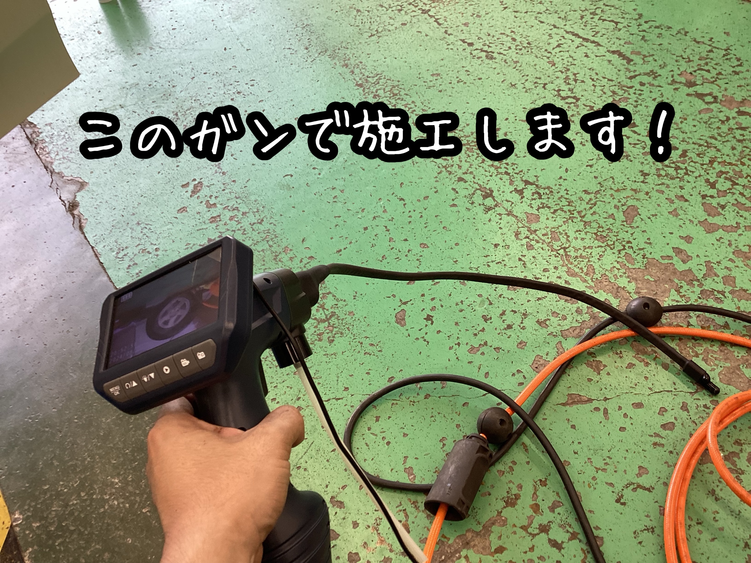 このカメラがついているガンで施工していく!