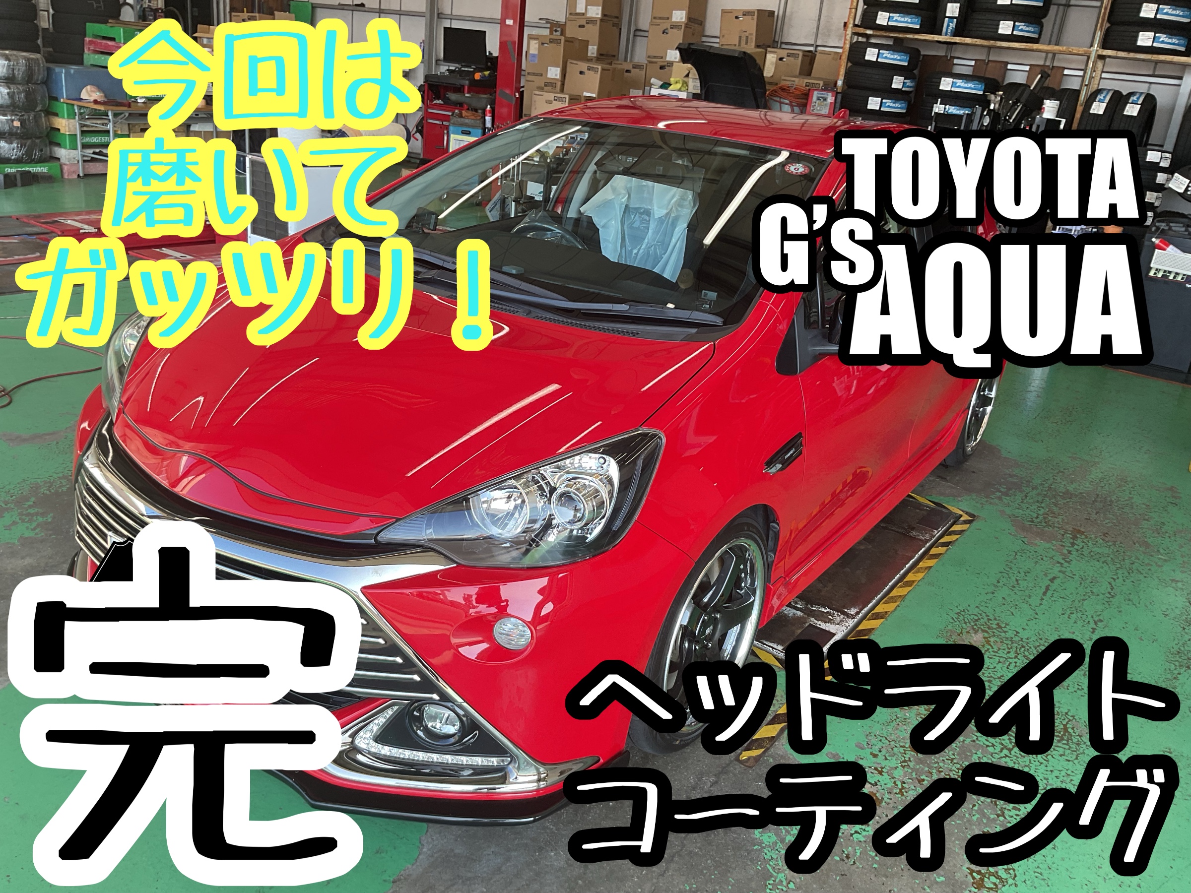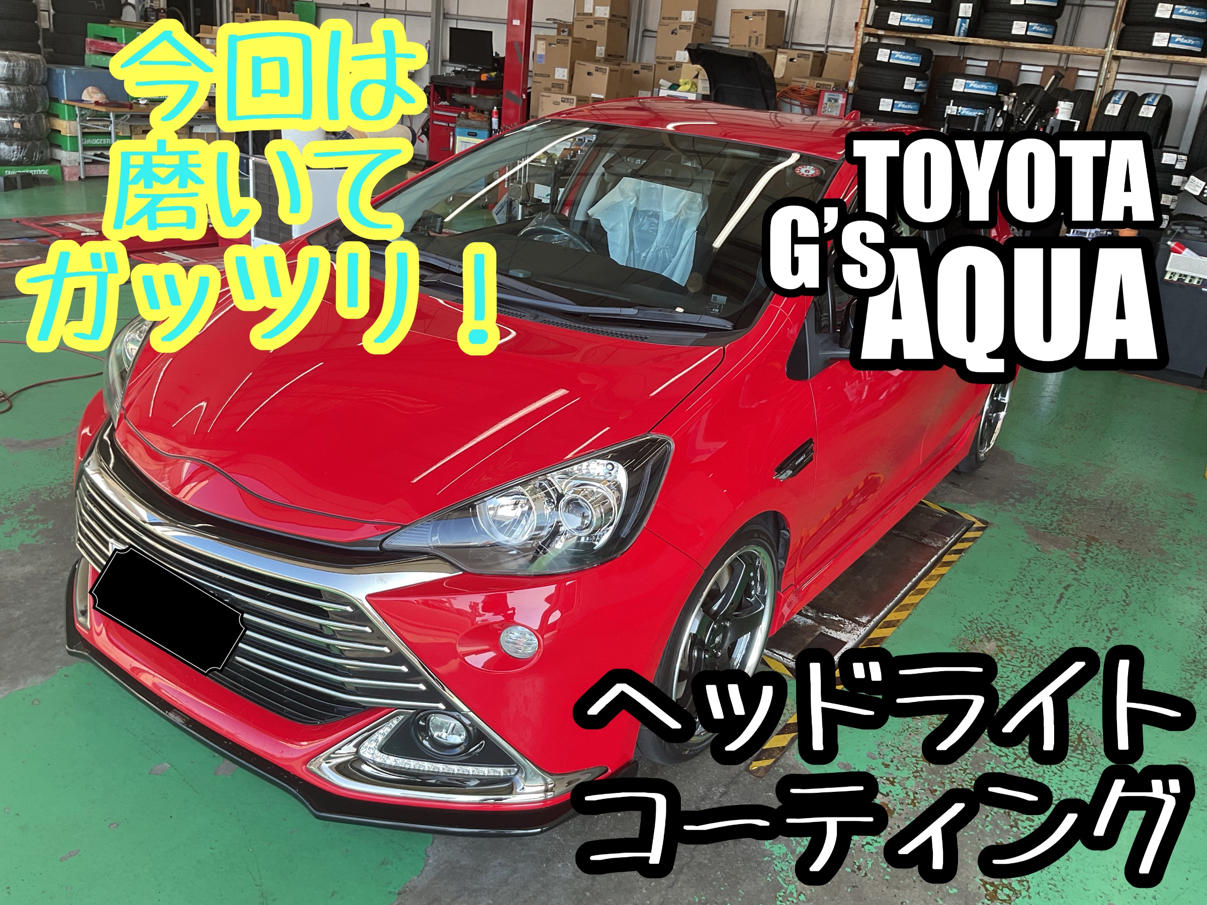 タグ:タイヤ館 水戸 けやき台 タイや館水戸けやき台 タイヤ 安い お買い得 アクア トヨタ G’s NHP10 ヘッドライトコーティング ヘッドライト クリア クリア剥げ 小傷 クラック 黄ばみ 外注 出張 プロ ポリッシャー ペーパー掛け バフ掛け