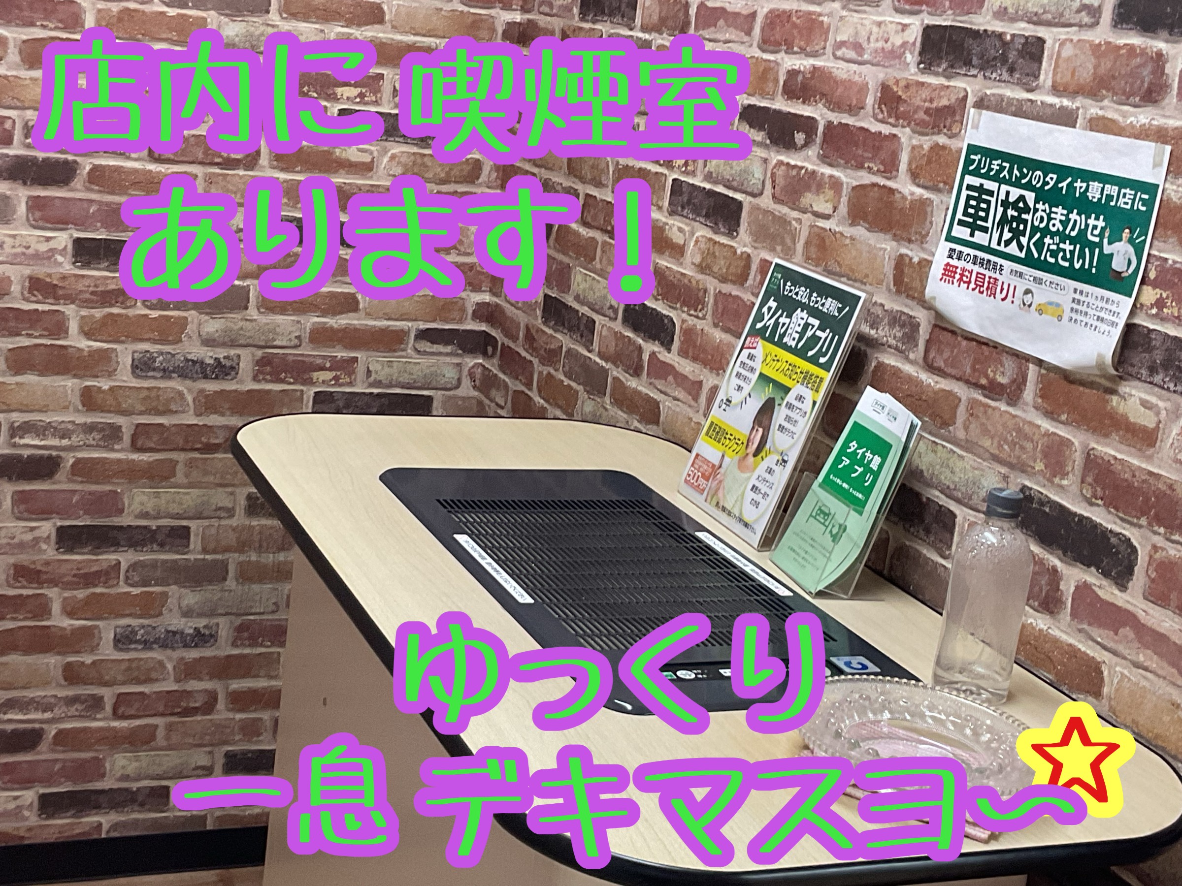 タグ:タイヤ館 水戸 水戸けやき台 けやき台 近くのタイヤ屋さん タイヤ屋 タイヤ オイル ホイール カタログ 待合室 待合スペース バッテリー 車検 用品 足回り 車高調 ブリヂストン フリードリンク ドリンク 喫煙室 分煙