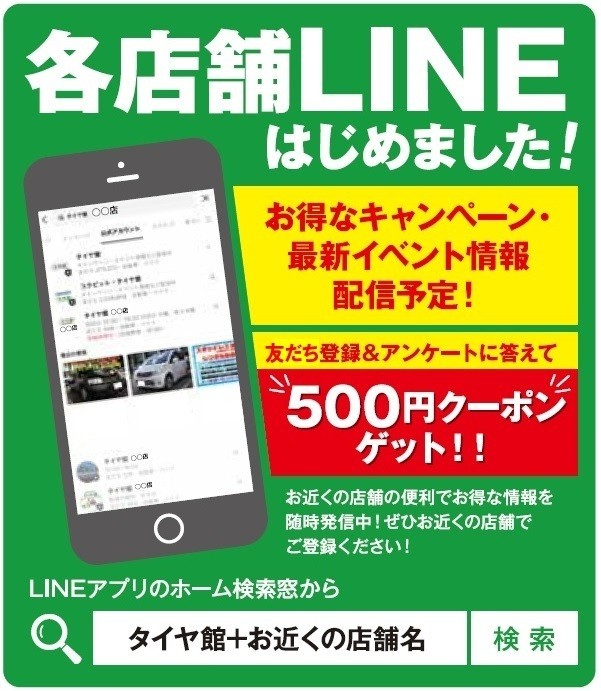タイヤ館水戸けやき台 公式LINEやってます!