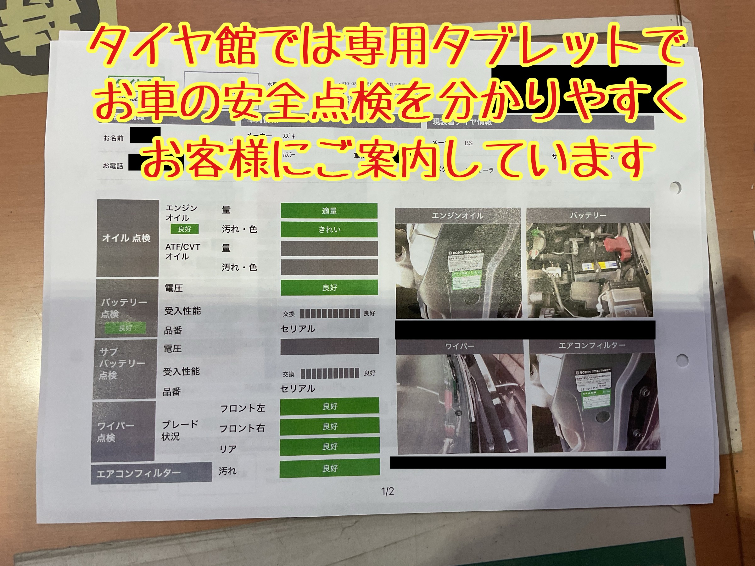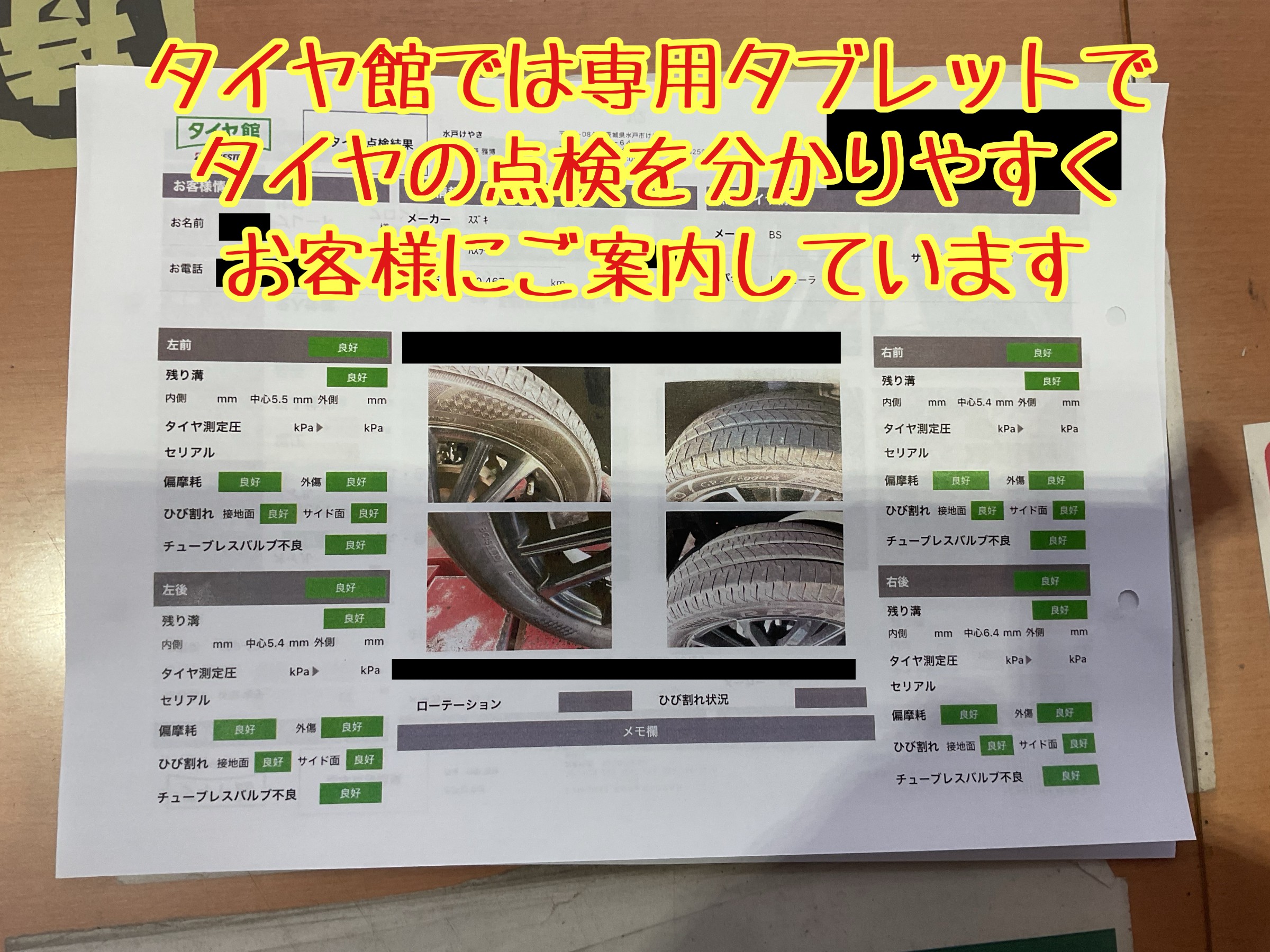 タイヤ館ではお客様のお車の点検を分かりやすくご案内いたします!