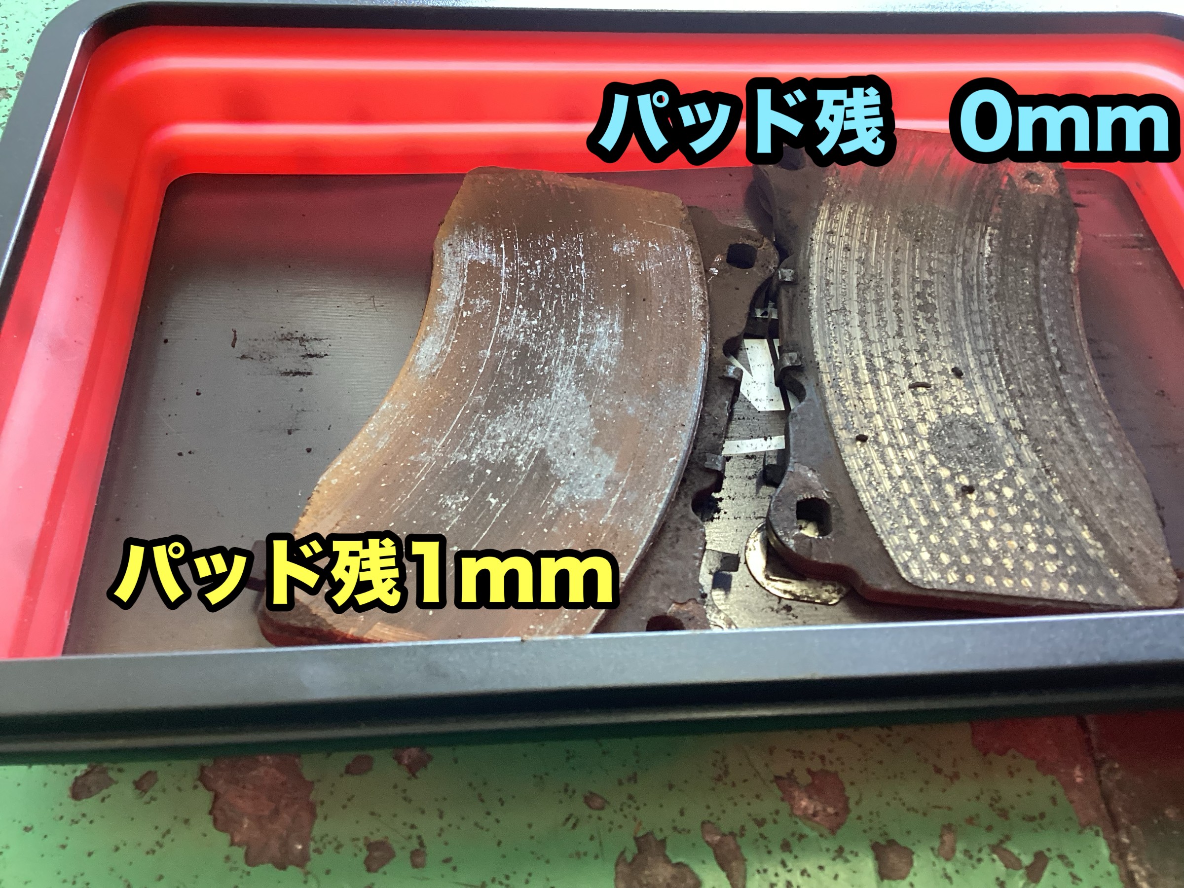 パッドの摩耗面がなくなり地金がでてしまっています。