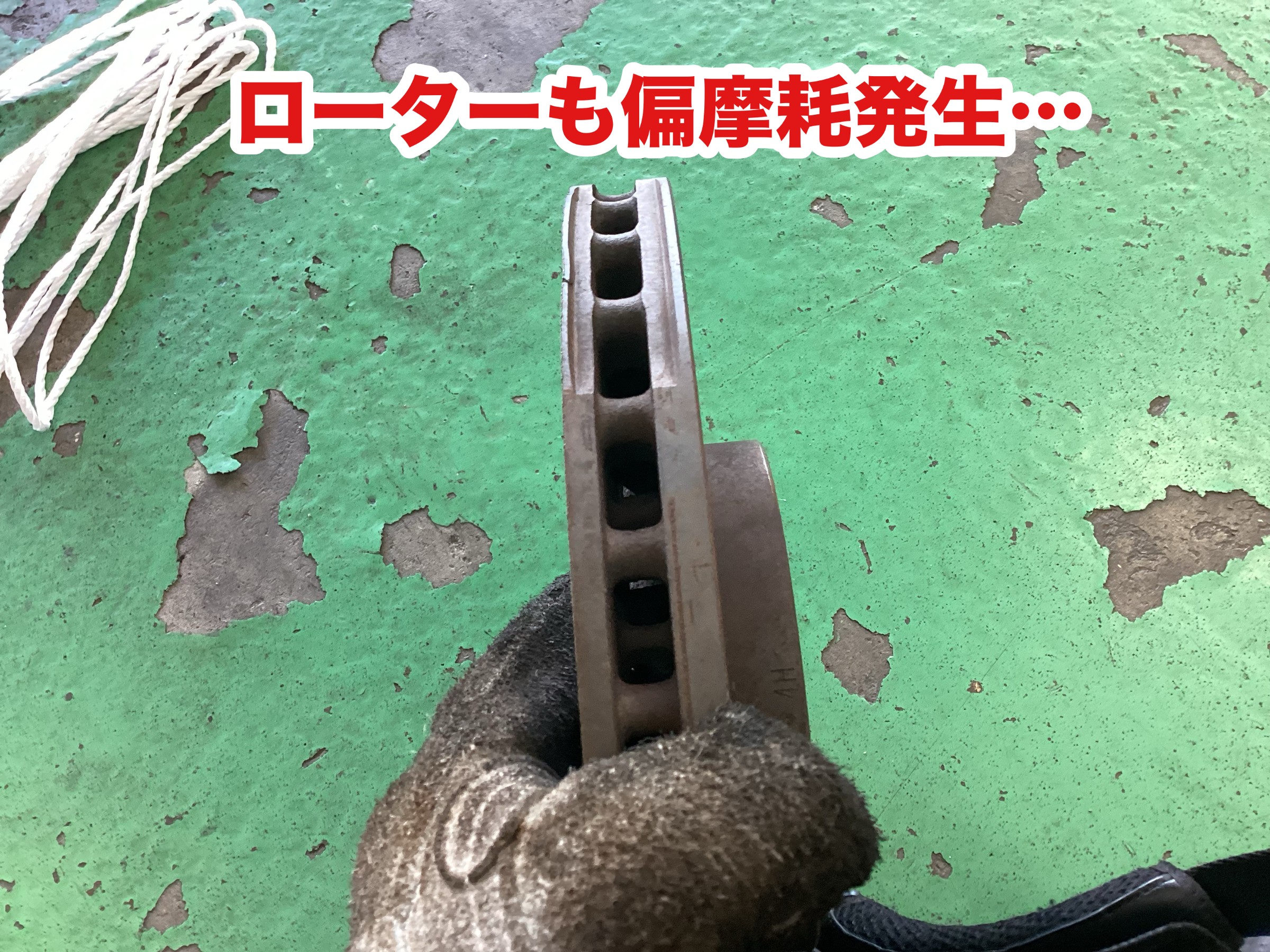 パッドが無くなっていたせいかローターにも摩耗がでてしまっています。