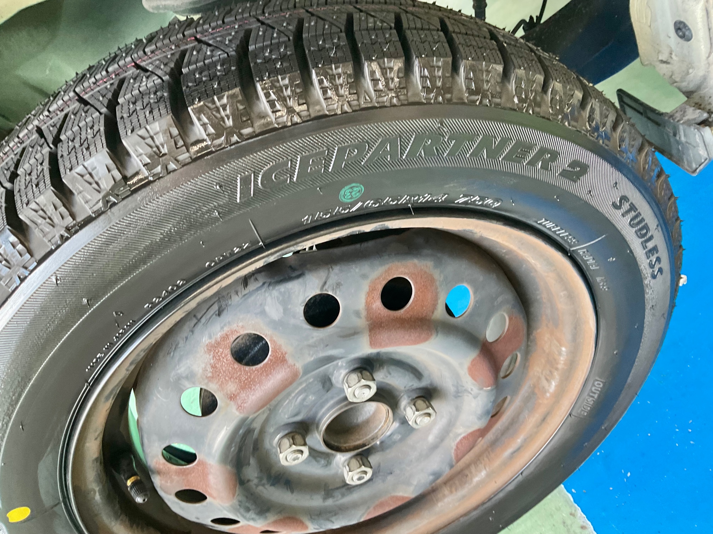 ミライースにブリヂストン製お手頃スタッドレスタイヤ取付け