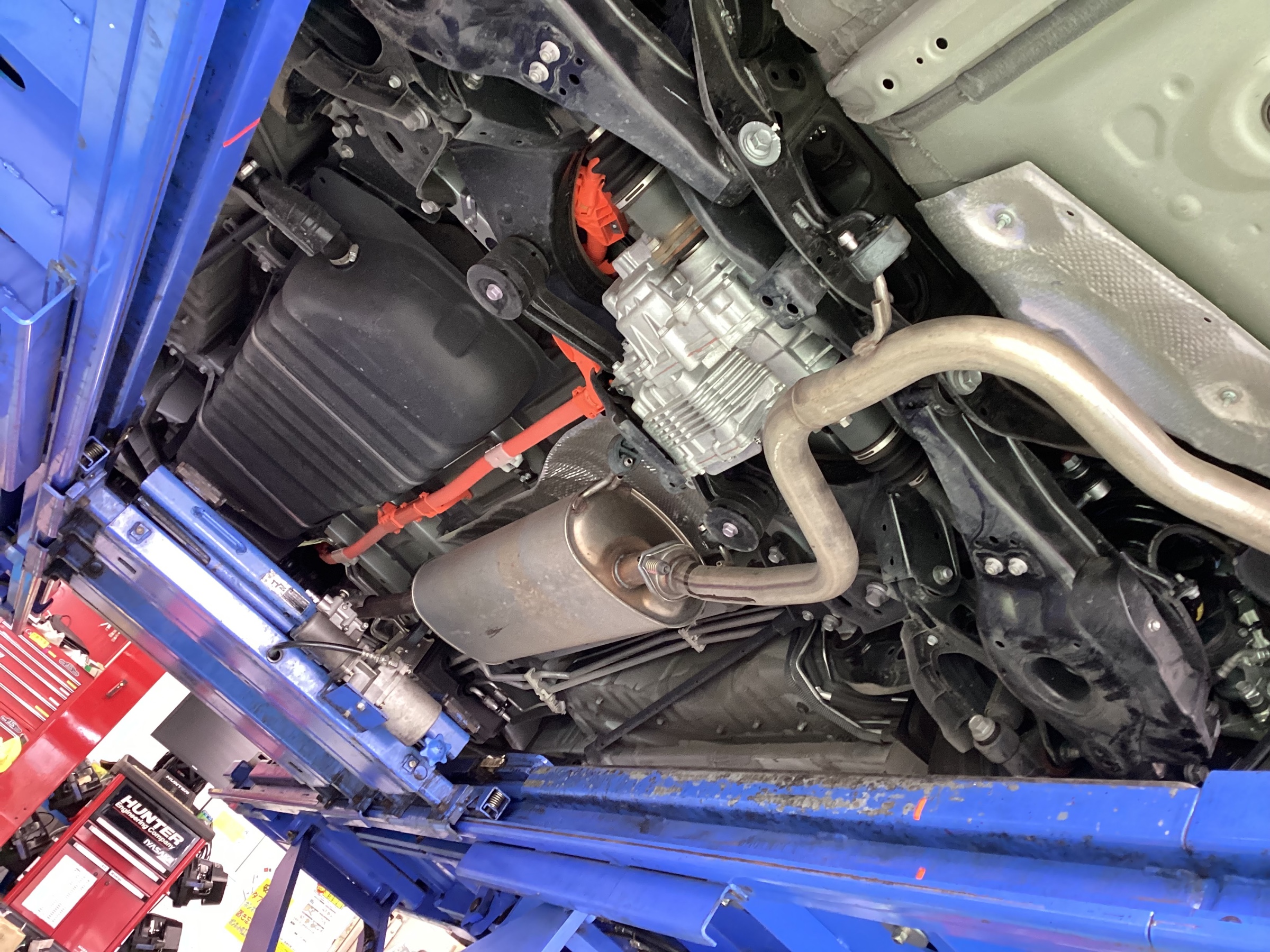リヤバンパーの下から見える