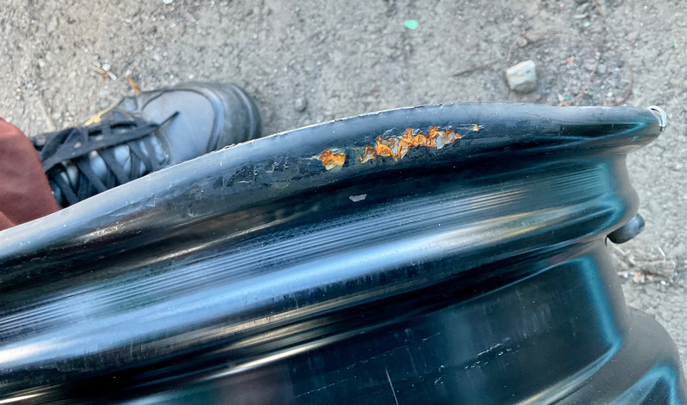 タイヤを外したら裏側は塗装が剥げて錆びていました。