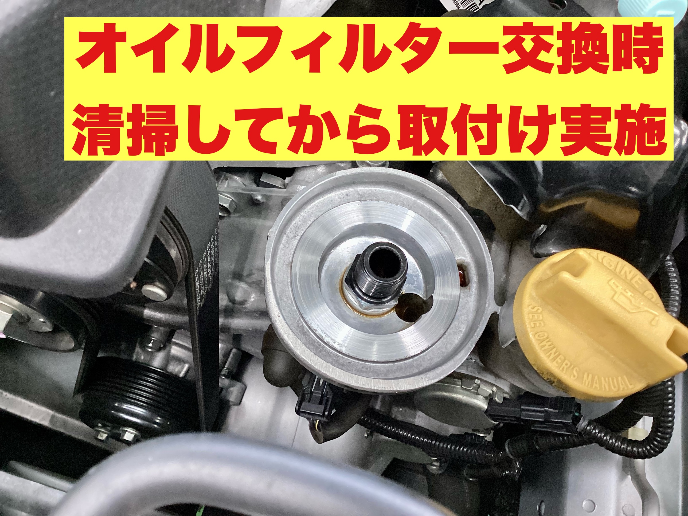 オイルフィルターがフィラーキャップ横