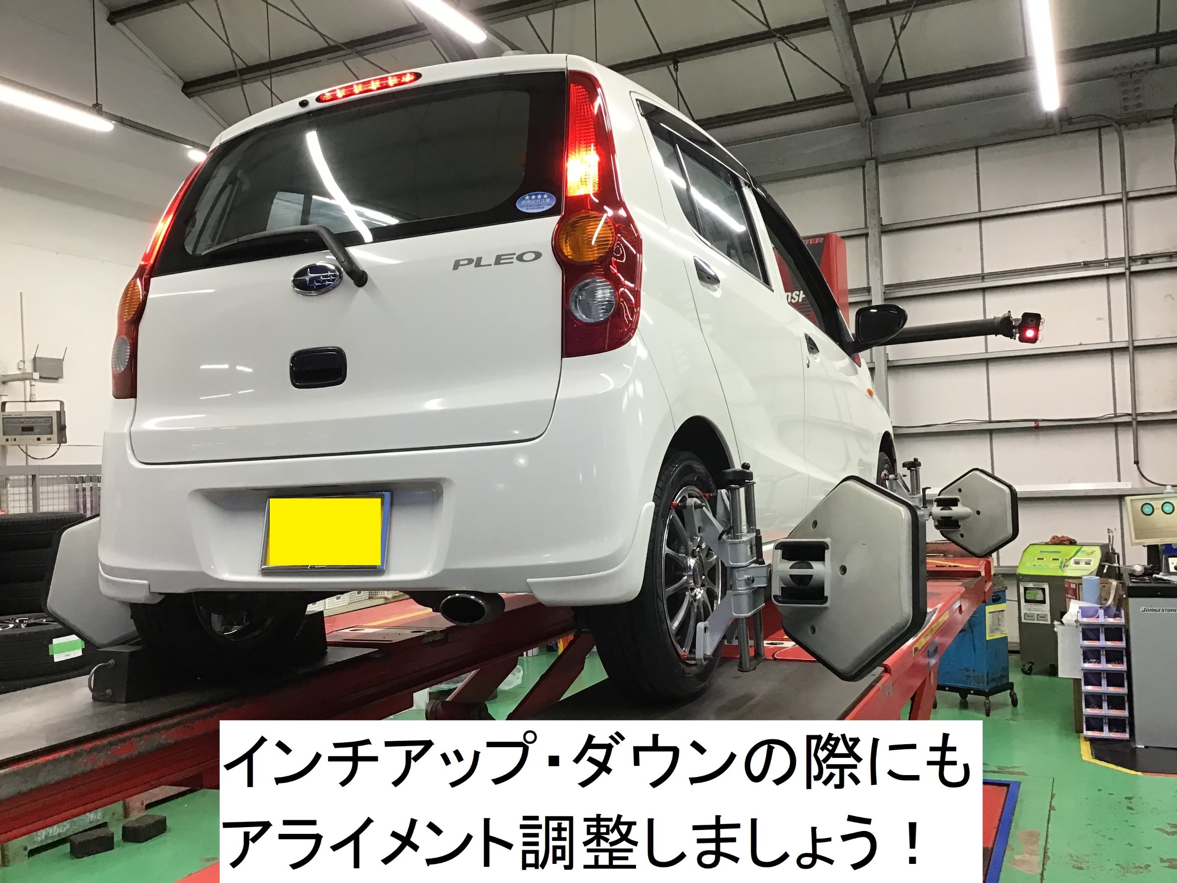 インチも変わり、タイヤも新品ですのでアライメント調整!