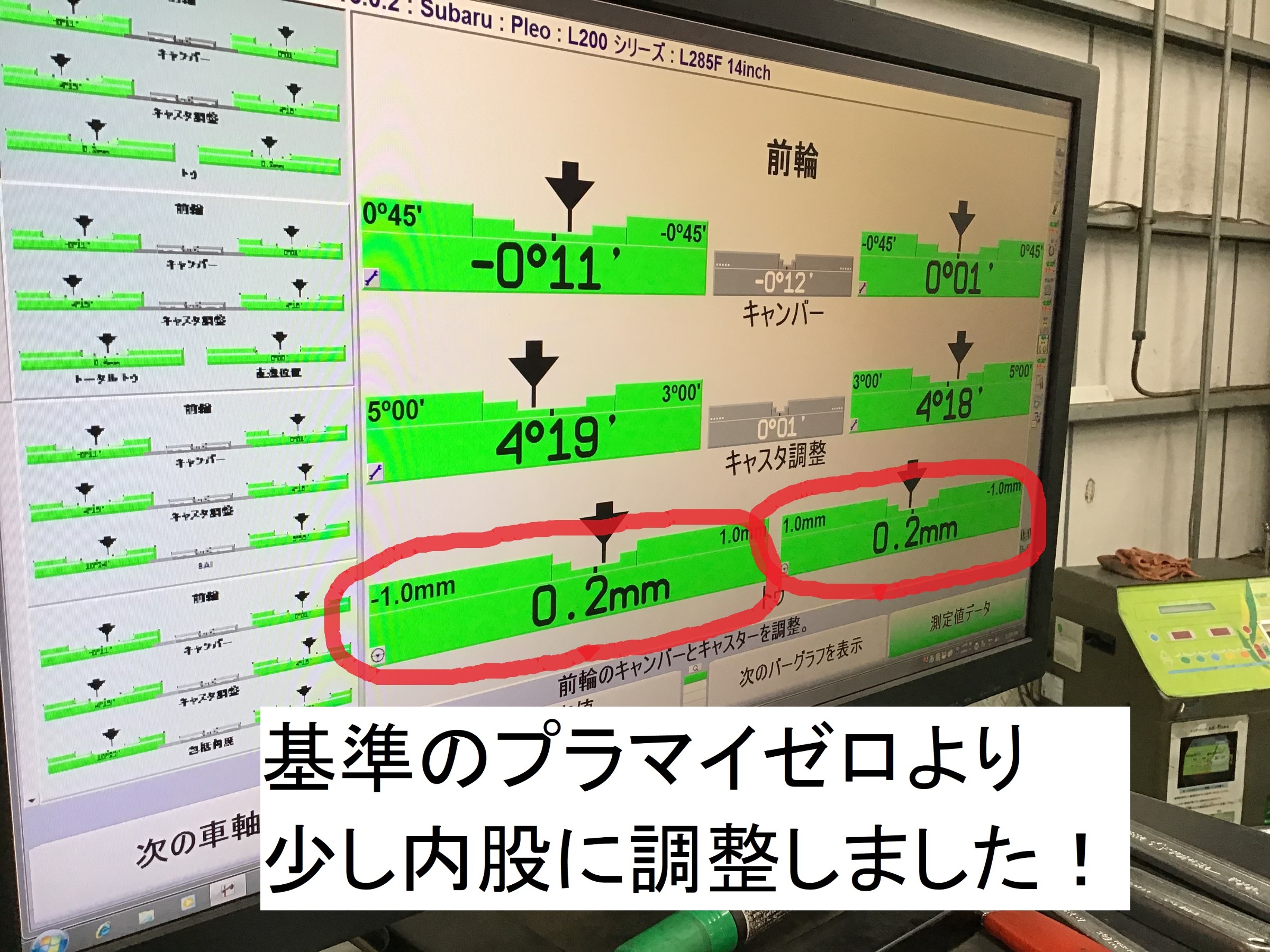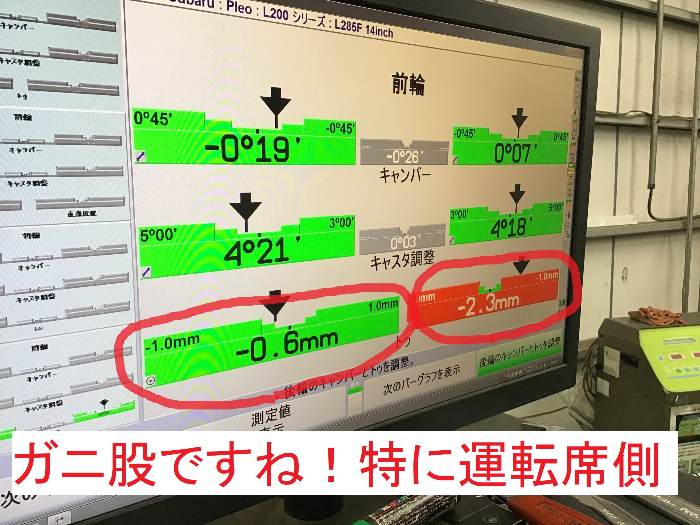 調整前!運転席側がガニ股ですね!