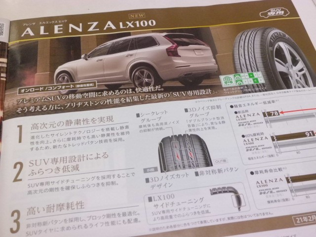 SUV専用 ALENZA LX100(アレンザ エルエックス ヒャク) ポスト ブリヂストンの走りで選べるSUV専用タイヤから、 オフロードコンフォート ALENZA LX100(アレンザ エルエックス ヒャク)が新登場‼ 関連情報もあわせてご覧ください ブリヂストンSUVタイヤ カテゴリ:商品情報 タイヤ関連