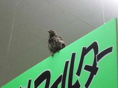 ずぶ濡れの鳥さんです。店内を飛びまくります、なんとなく子供の鳥さんみたいです。