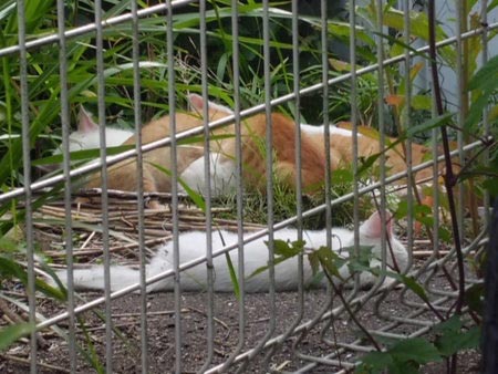 裏庭の家族。 ポスト 2015年6月25日 こんにちは、相澤です。だいぶ、日に日に暑さも増してきた今日この頃・・・・・(@_@)家の息子の小学校でもプール開も行われ、いよいよ夏ってなかんじですねぇ~。当店でも、夏に向けて、店頭の模様替えや、店の周りの草刈りなどなど・・・。とっ、なにやら草陰に・・・(゜o゜)数えてみると、親猫の周りに子猫が1・2・3・4?親猫のお乳を飲み飲み・・・・静かに見守ります(*^_^*)