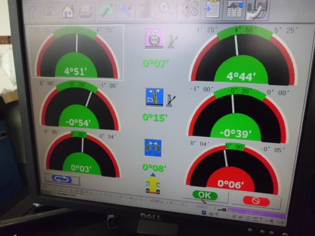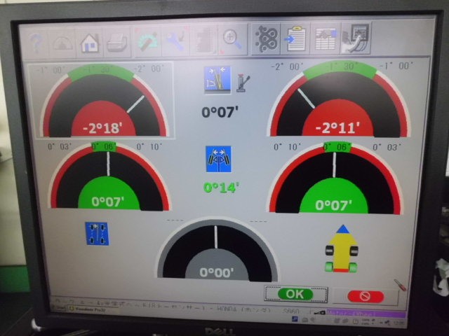 このように、4輪のタイヤの角度を数字化表示をして、調整していきます。