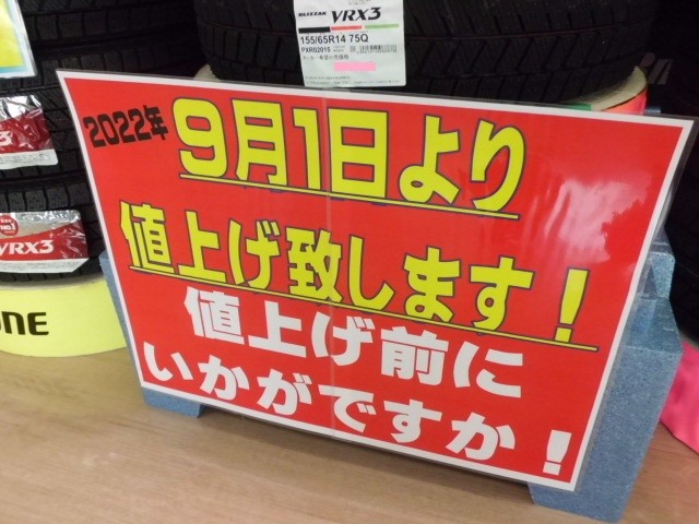 今日の、タイヤ館いずみは、 ポスト 2022年7月28日 いつもご利用ありがとうございます。 暑い日が続きますが、暑さでマスクを外したい気持ちを抑えて・・・・ 本日も、タイヤ交換・オイル交換、迅速・丁寧に作業いたします。 夏の大総力祭もあとわずか(≧◇≦)8月7日まで スタッドレスタイヤも今がお得!(^^)! 担当:相澤