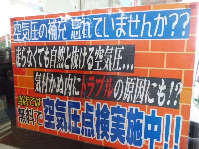 先日、お盆休み期間中の車のトラブル状況で、タイヤのトラブル件数が多く、空気圧不足のパンクが多いとの事でした、
