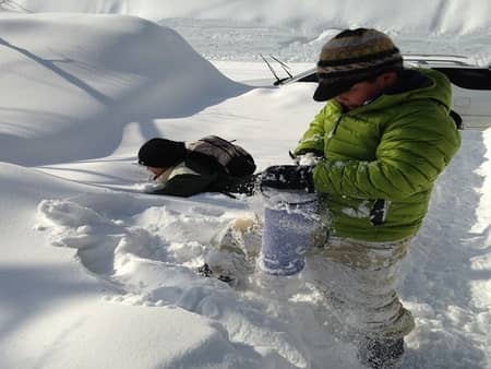 氷上釣りとは、湖などに張った氷の上で直径15センチほどの穴を掘りそこに糸を垂らして魚を釣るのであります!!
