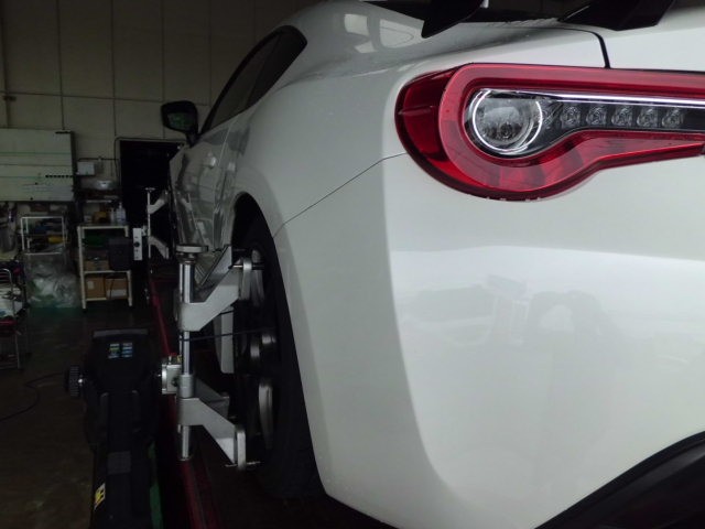 今日の、タイヤ館いずみは、 ポスト 2024年5月18日 いつもご利用ありがとうございます。 本日も、タイヤ交換、オイル交換、迅速・丁寧に作業いたします。<(_ _)> 〇〇様のGR86アライメント調整をやっみた。(@_@) 当店では、車種多数のアライメントの実績があります。※車両リフトに乗る車の大きさであればほぼ調整いたします。<(_ _)> アライメントに関する事は、なんでもご相談ください。<(_ _)> 担当:相澤