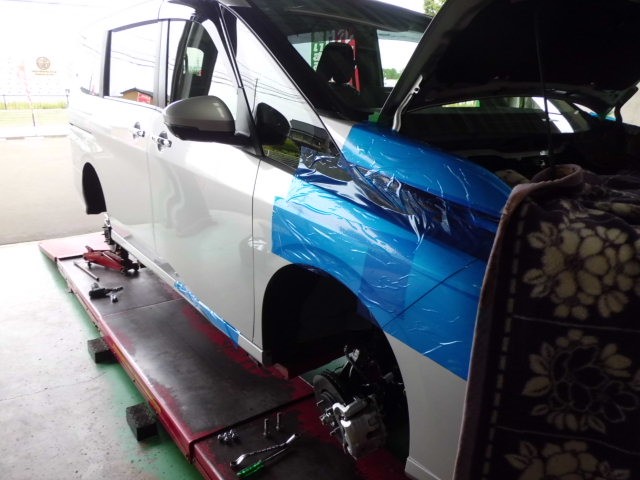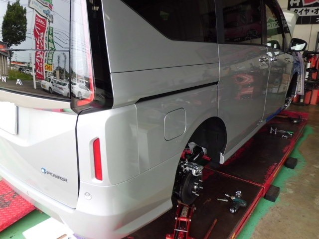 今日は、日産セレナのダウンサスペンションの交換、アライメント作業をやってみました。