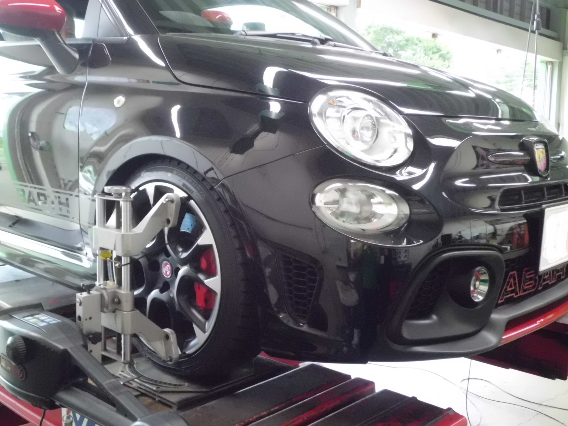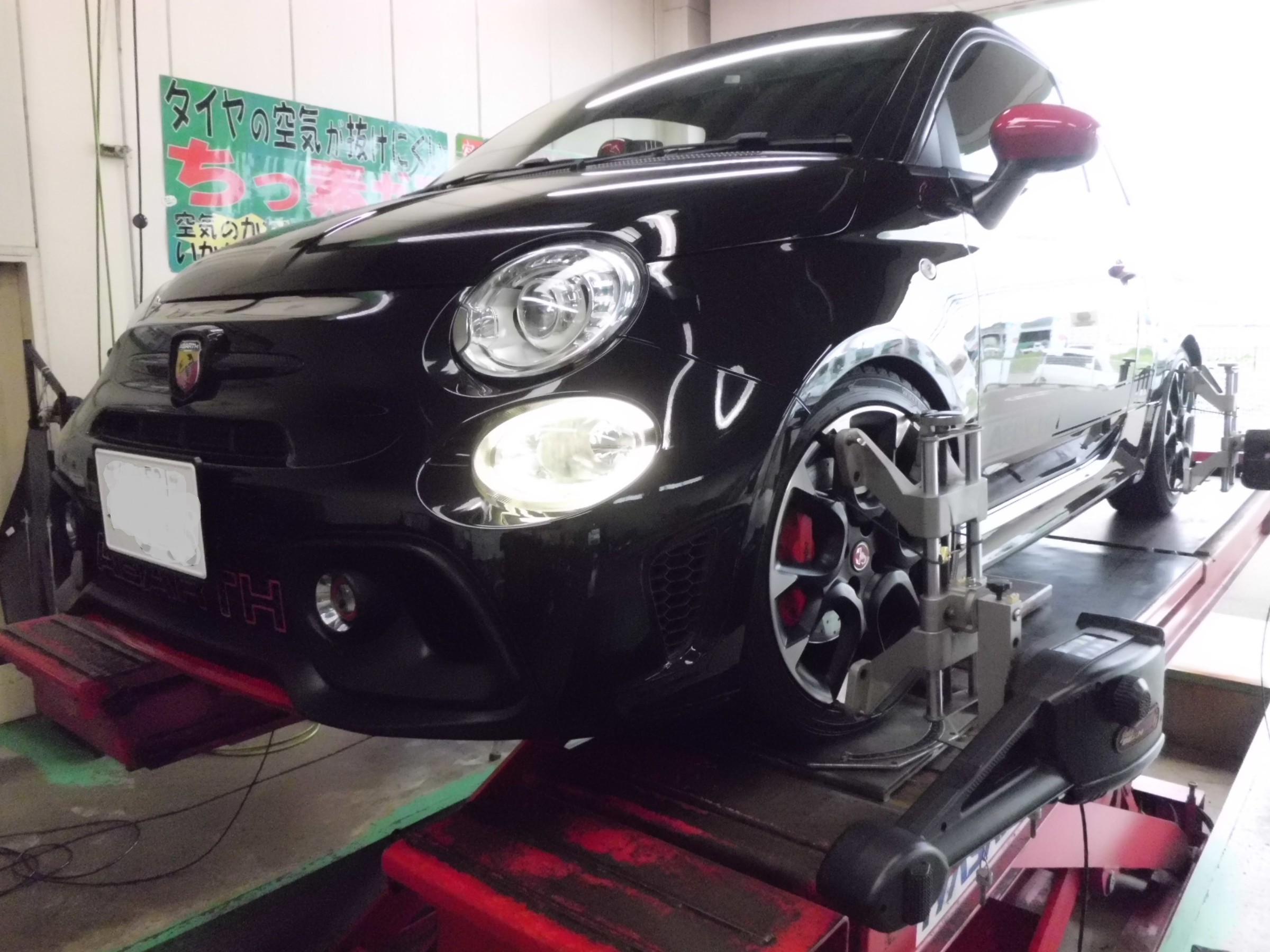 今日の、タイヤ館いずみは、 ポスト 2024年9月13日 いつもご利用ありがとうございます。 本日も、タイヤ交換、オイル交換、迅速・丁寧に作業いたします。<(_ _)> 本日の作業は、アバルト585のアライメント作業です。(≧◇≦) ディーラー様でダウンスプリング交換後のアライメントでした、 スプリングのメーカーは分りませんでしたが、下がり具合はバッチシですねぇ~!(^^)!。 又のご依頼お待ちしております。<(_ _)>