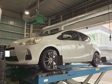 【アライメント調整】TOYOTA アクア タイヤの片べり改善にアライメント調整!