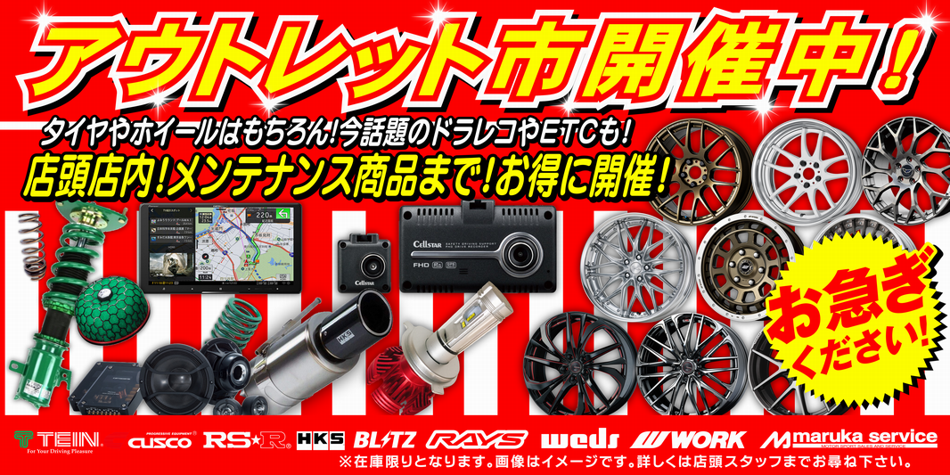 ただ今、タイヤ館都城店では『アウトレット市』を開催しております☆