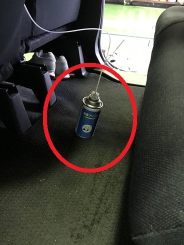 車内の真ん中に置いて作業します!