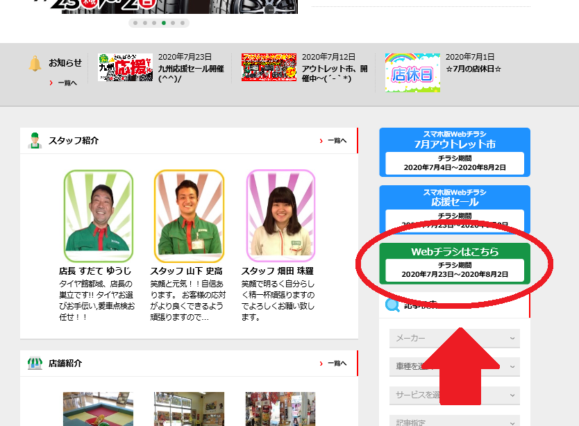 ただ今、タイヤ館都城店のWEB内に『WEBチラシ限定クーポン券』があります!