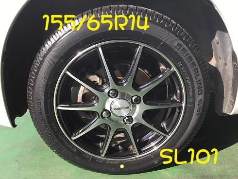 新しく装着したタイヤは、ブリヂストンの『155/65R14 SL101』です!!