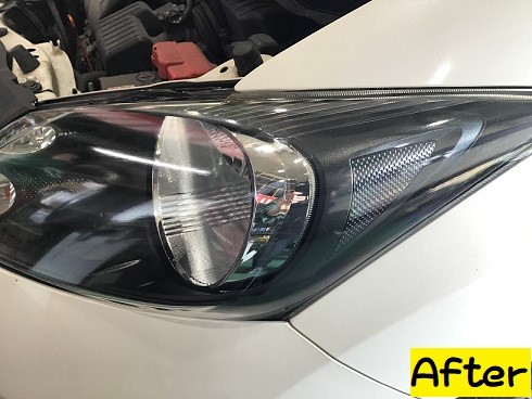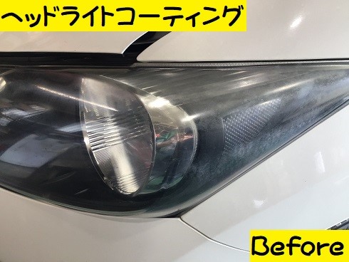 ヘッドライトコーティング前は、黒い部分のくすみが目立ちます(;'∀')