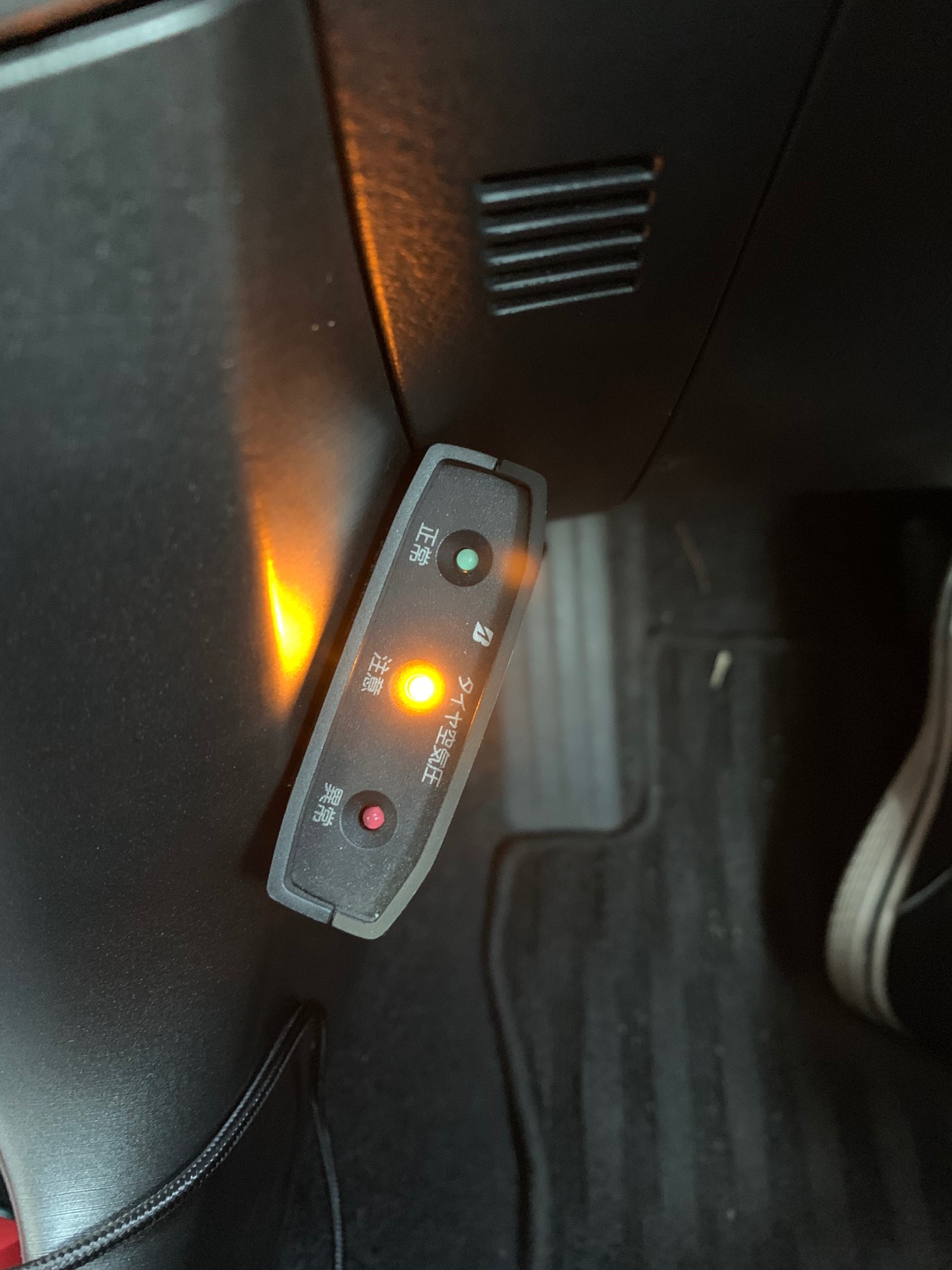 取り付けたタイヤの空気圧が一定を下回ると社内のインジケーターが光る仕組みです。