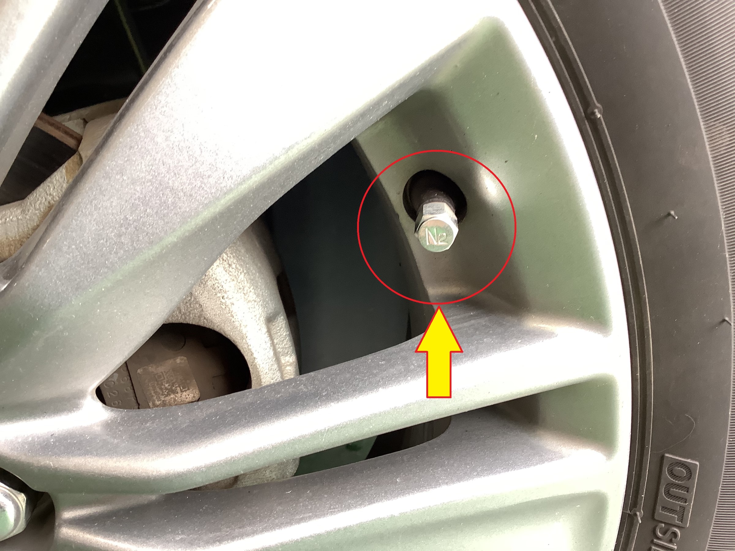 上の写真のバルブのキャップがN2になっているかと思います!
