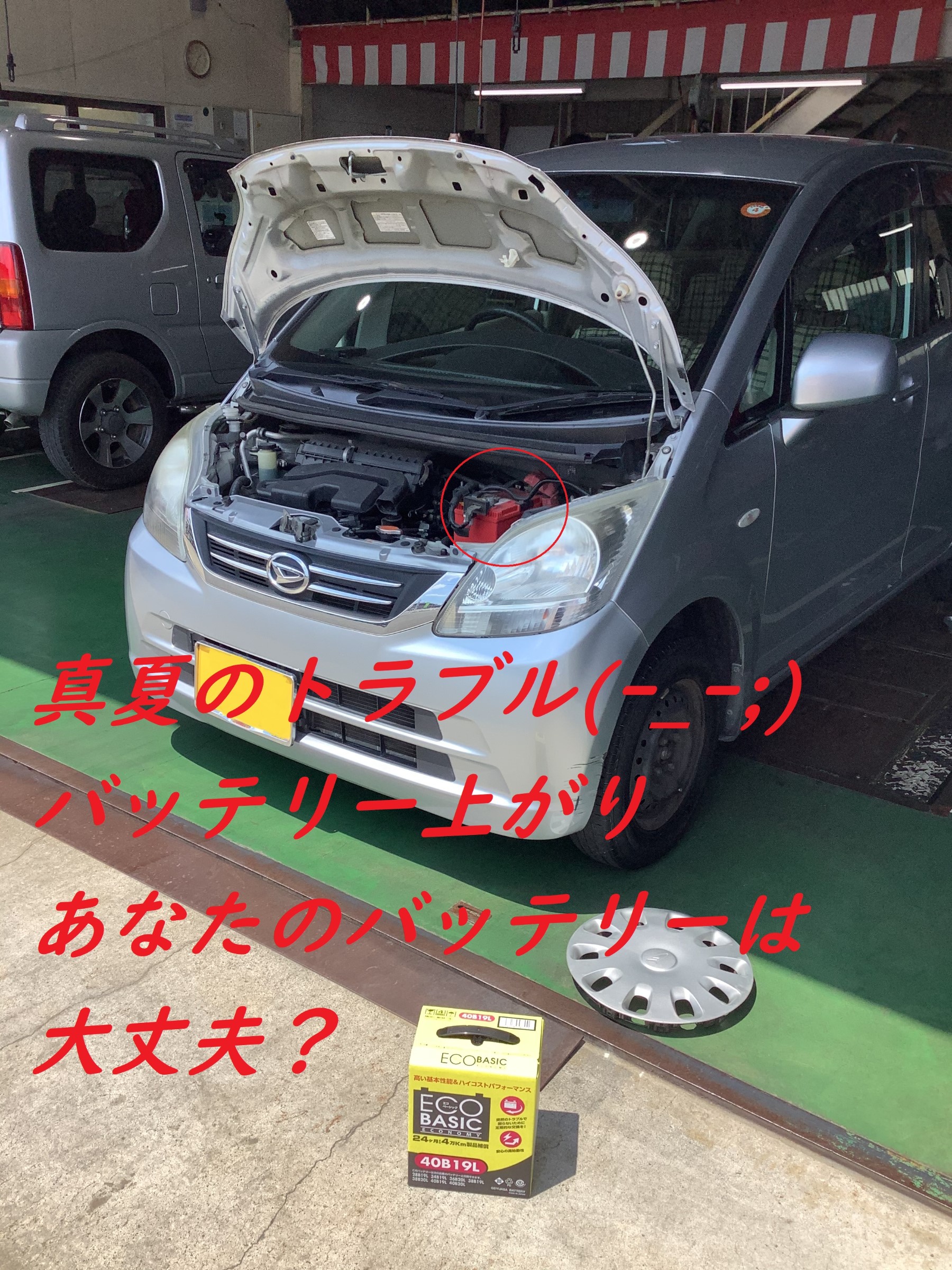 夏の暑い時間帯に、バッテリーあがりは最悪( ノД`)シクシク…