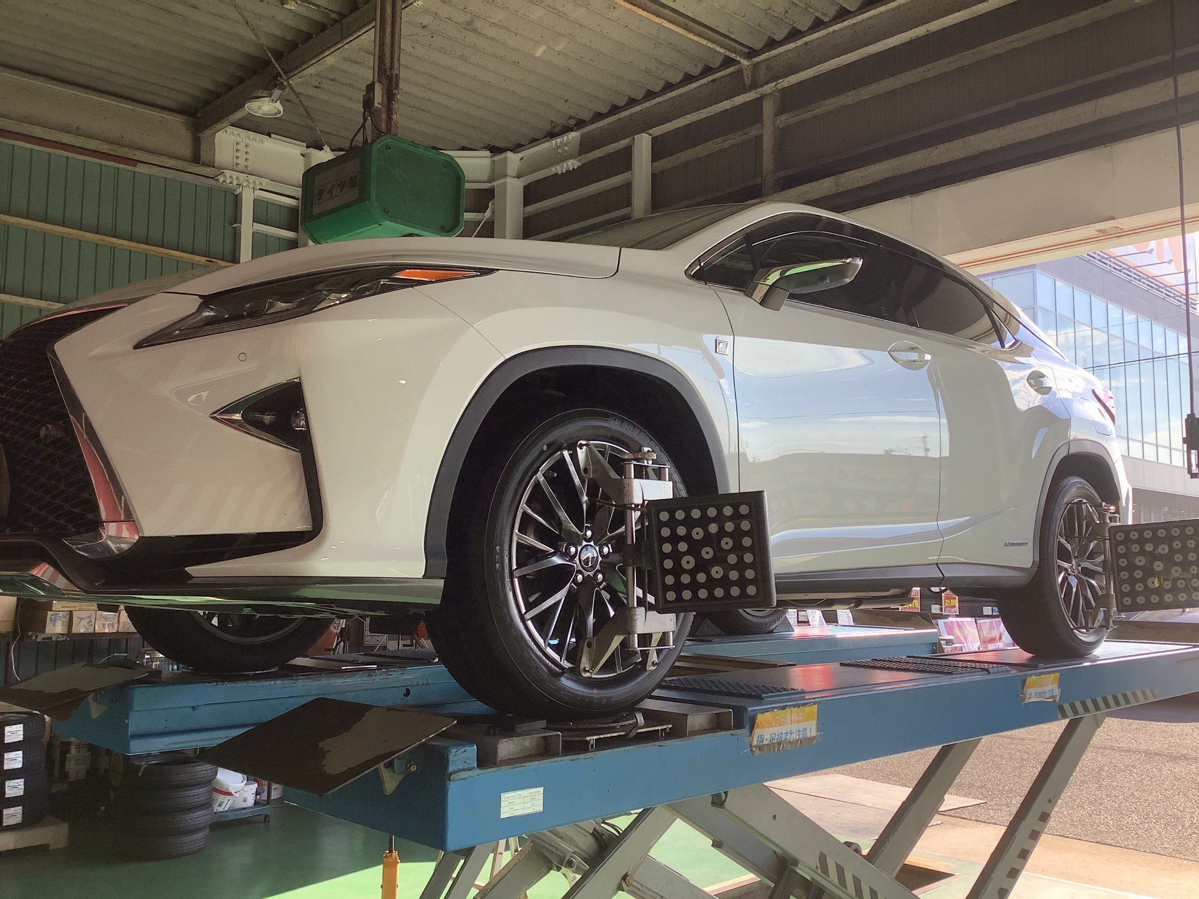 専用タイヤを取り付けたので、しっかりアライメント調整を実施しました。